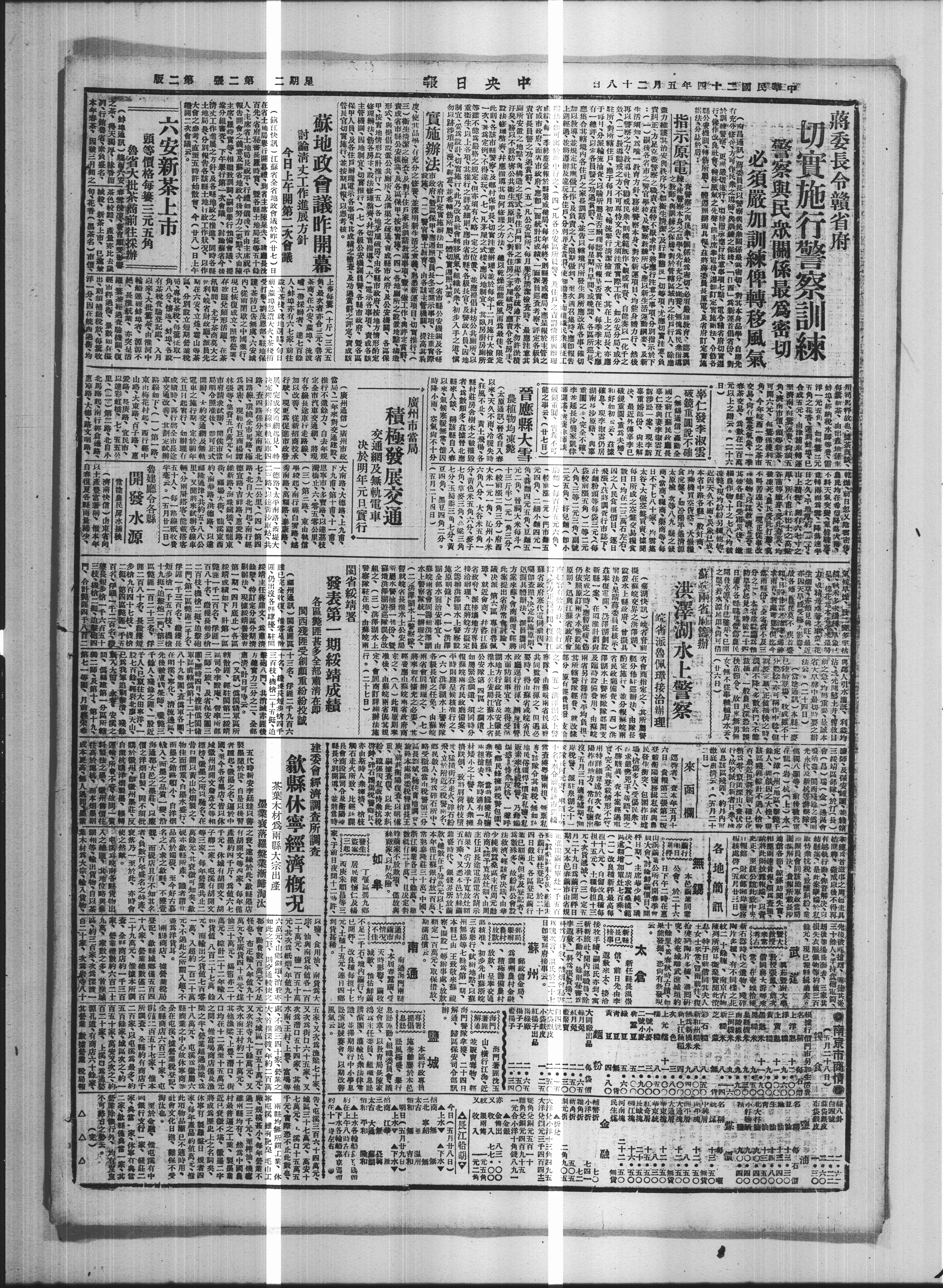 蒋委长令赣省府 切实施行警察训练 警察与民众关系最爲密切
