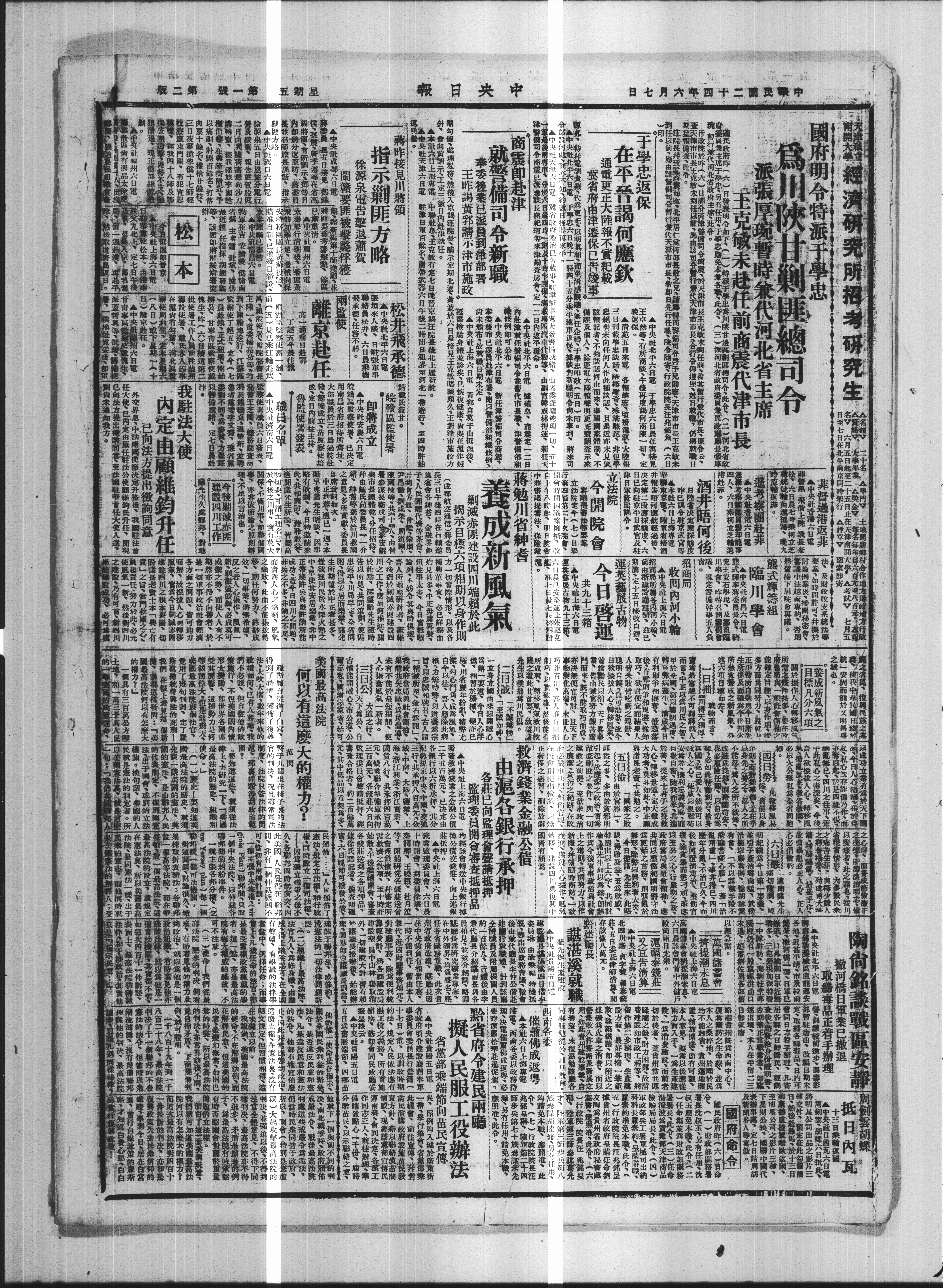 黔省府合建民雨廳 拟人民服工役辦法