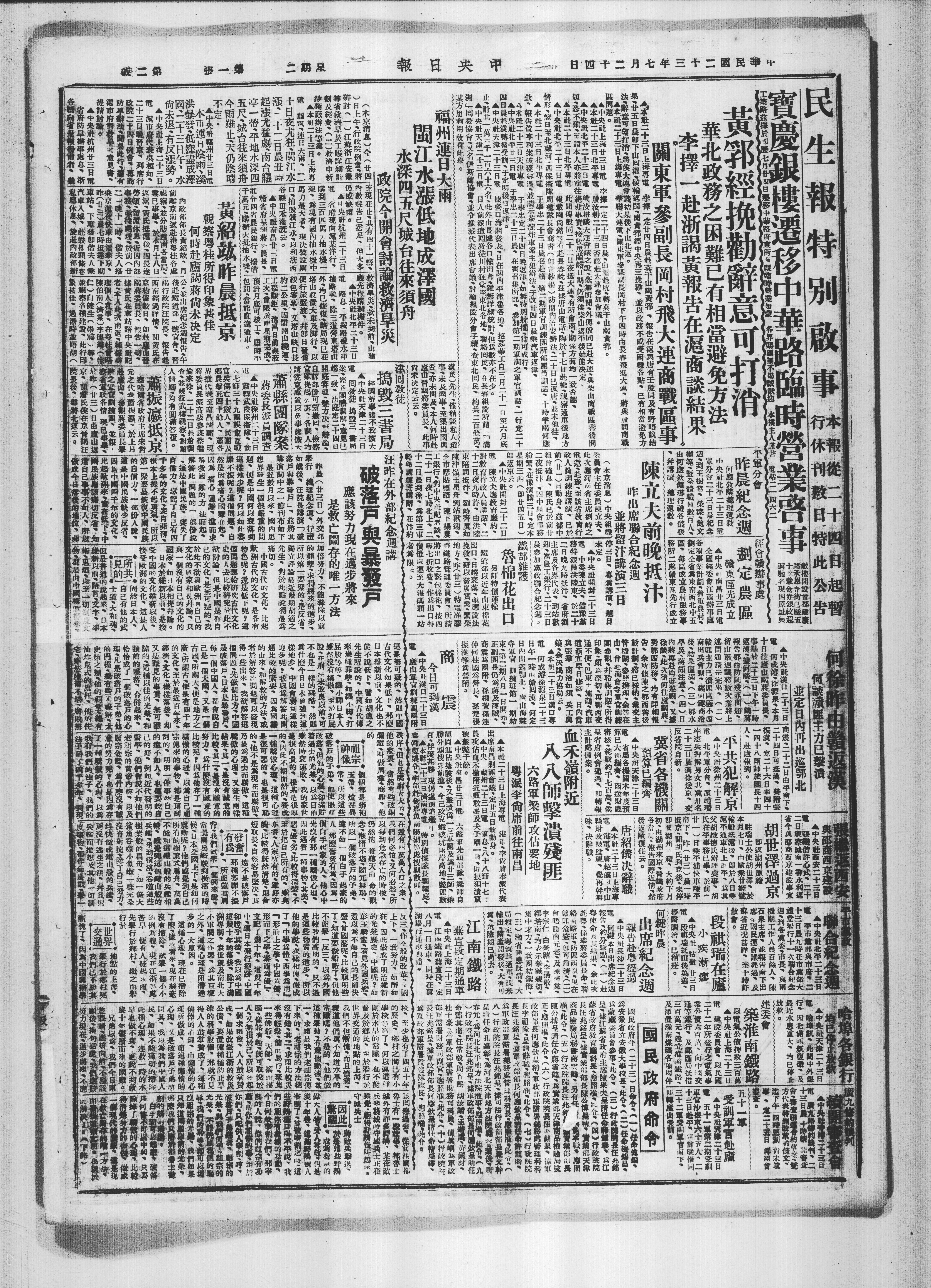 中央社南昌廿三日電