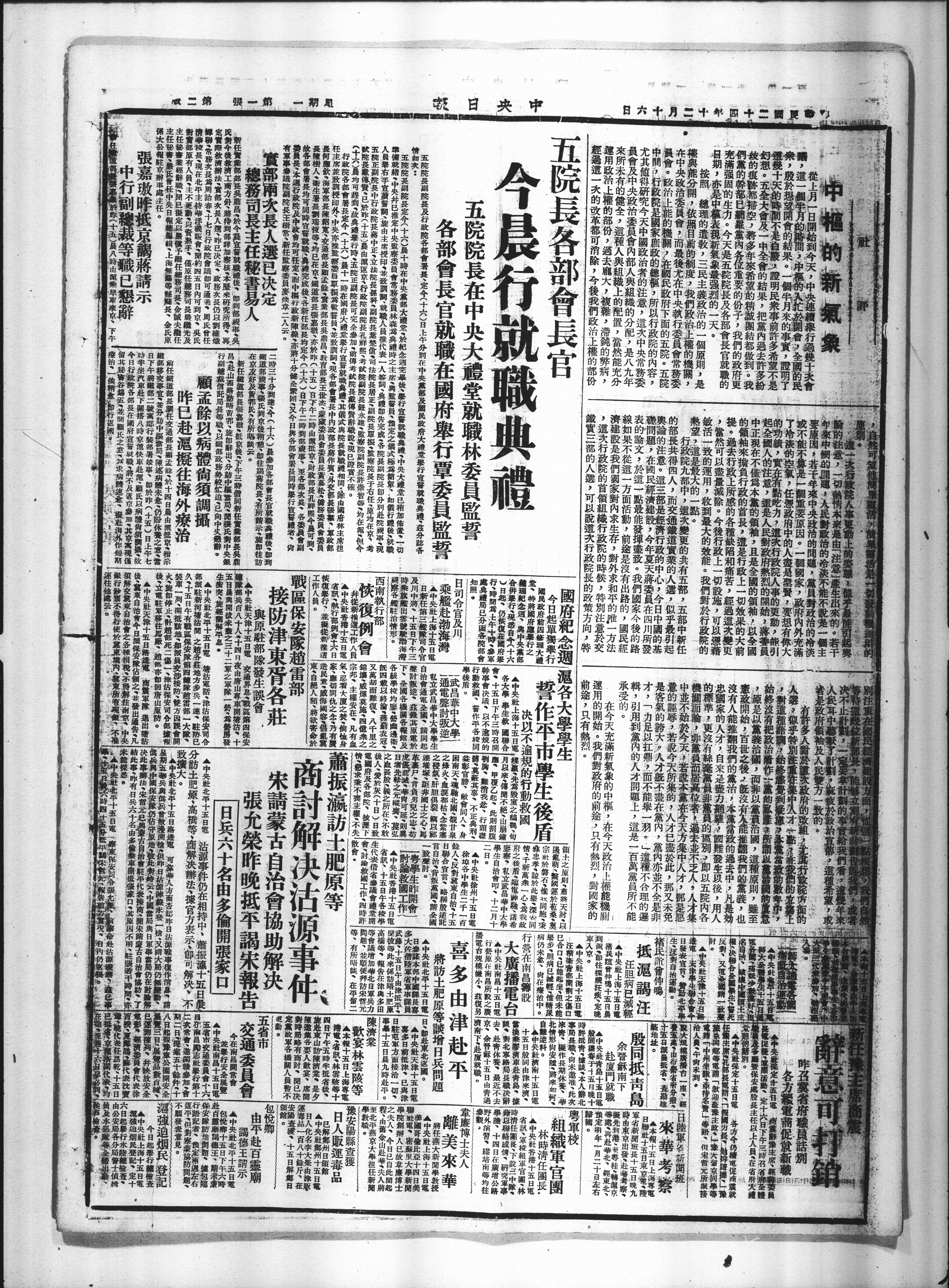 陳邀集各要人歡宴、席明間