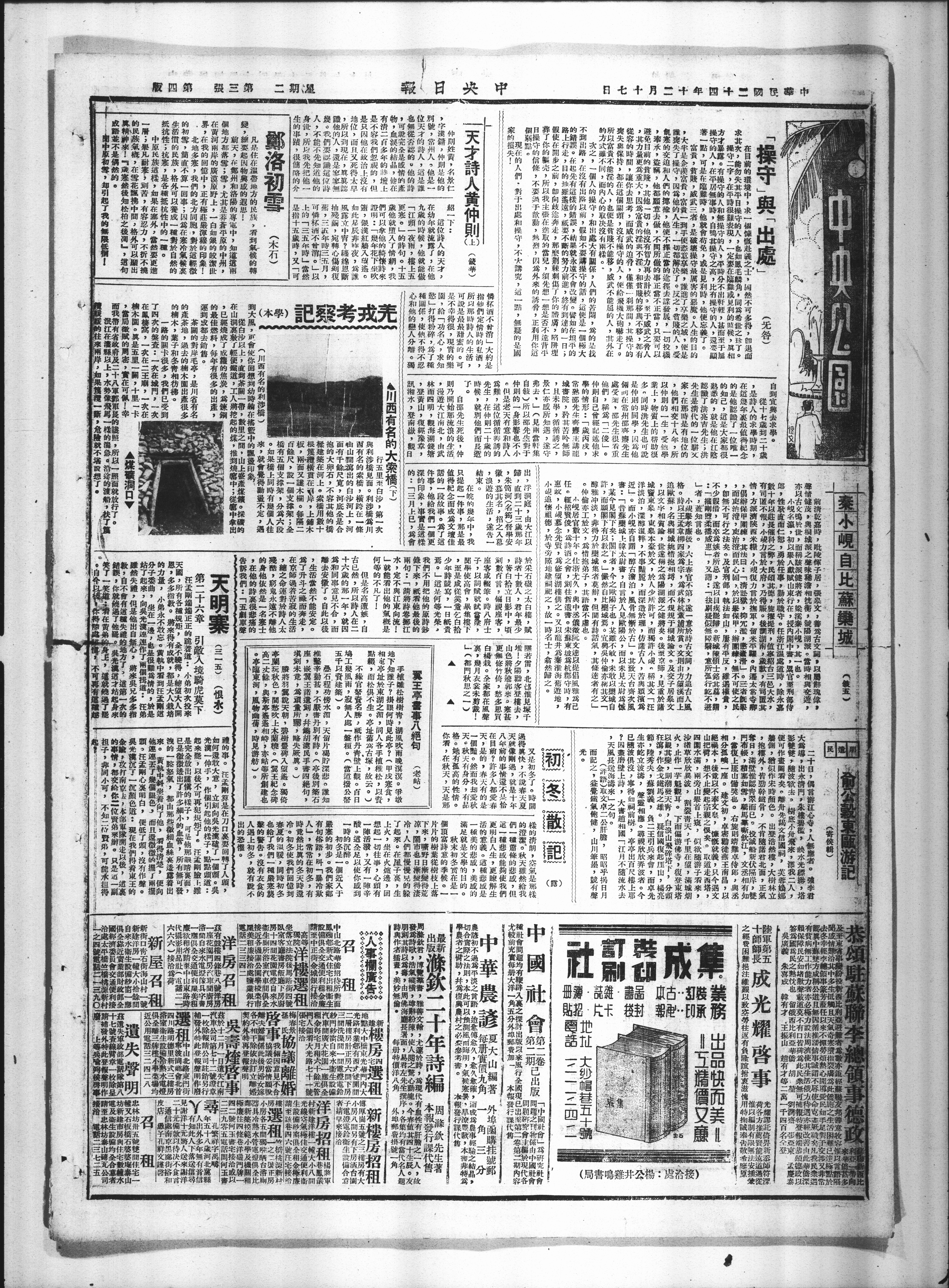 亭临东河,风物幽蒨,见游舫)。