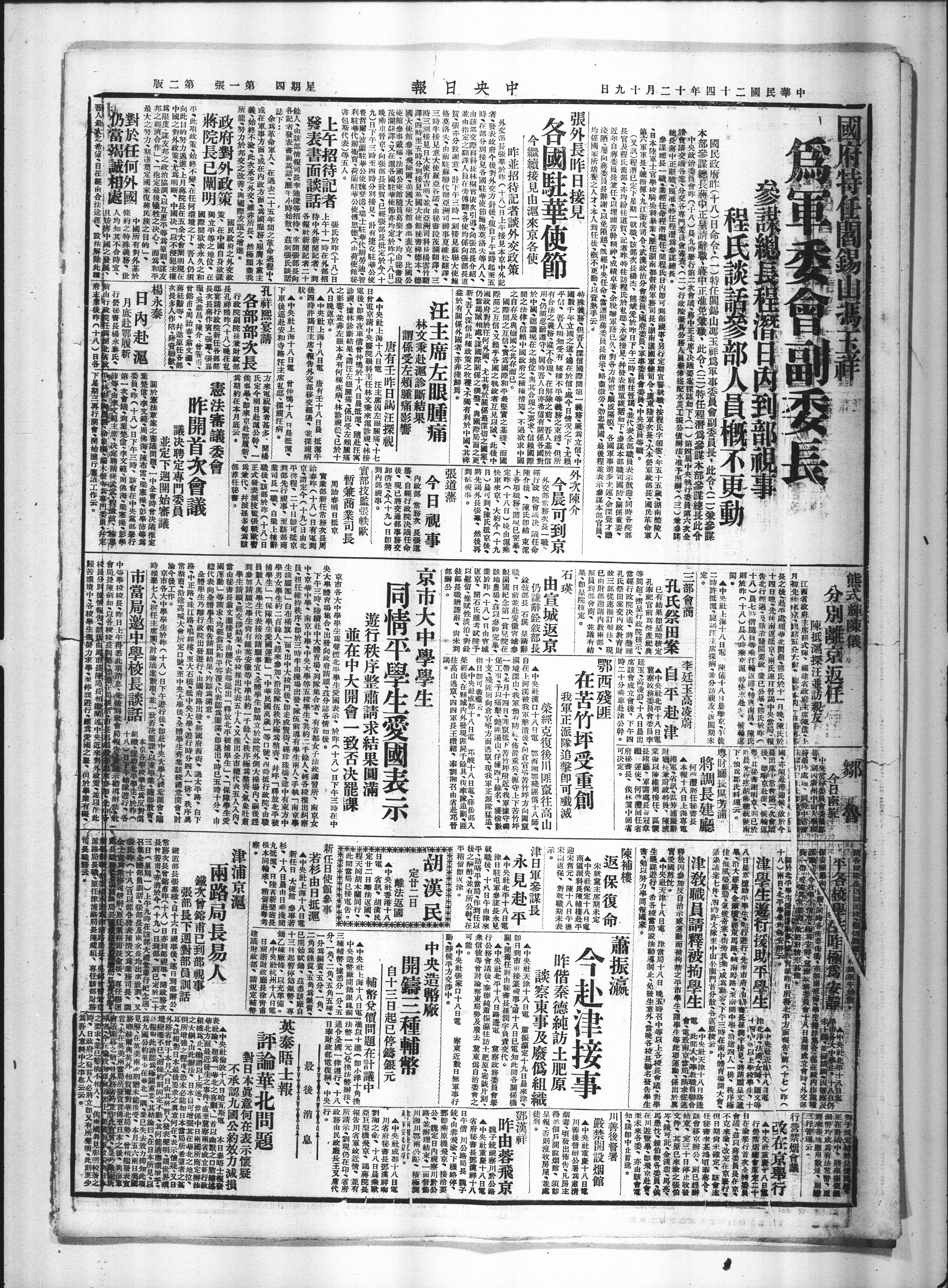 中央肚上海十八日陈侯十八日晨雅京午後
