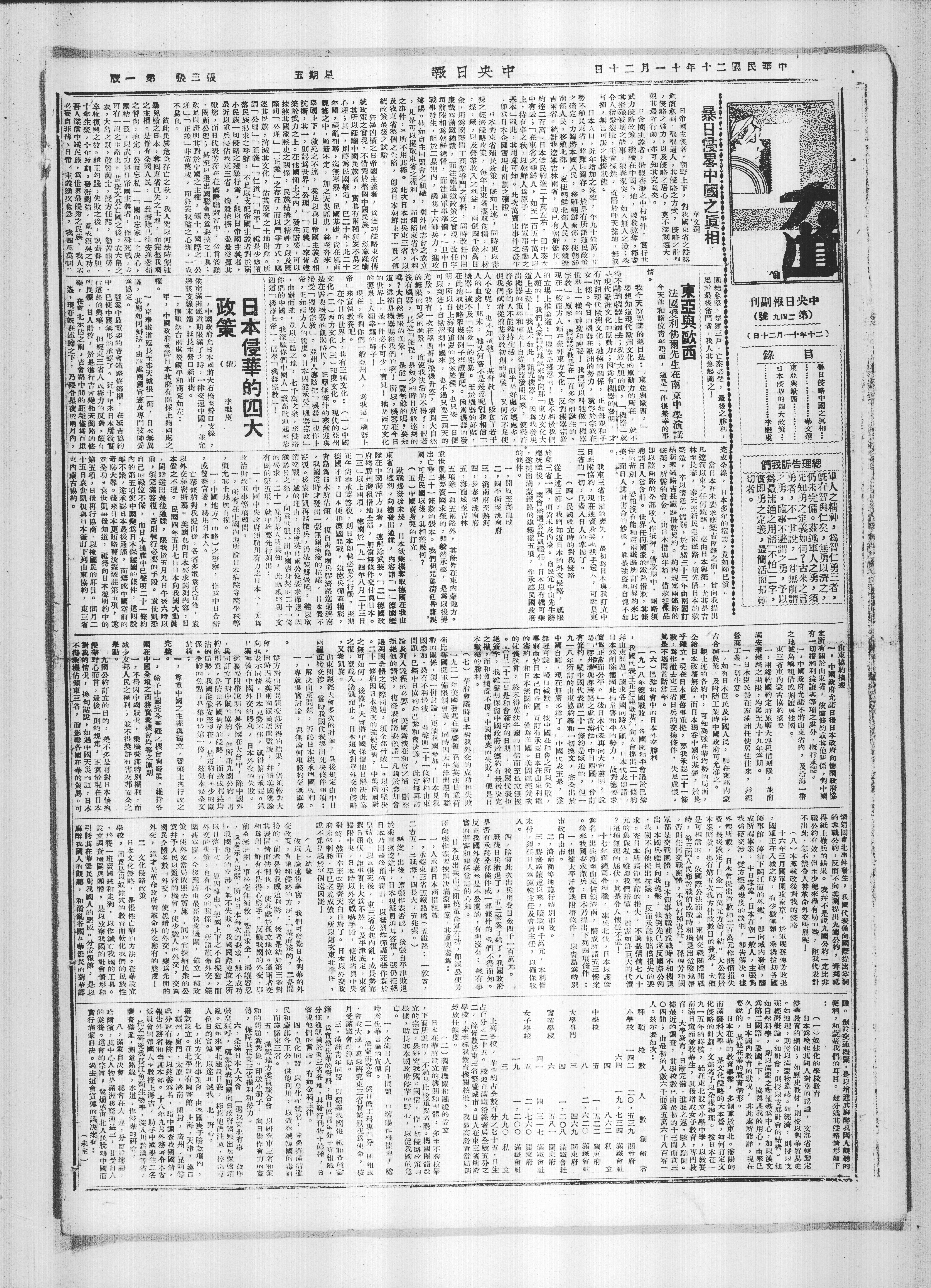 東亞與歐西 法國愛利佛爾先生在南京中學演講 福的的他理行和播