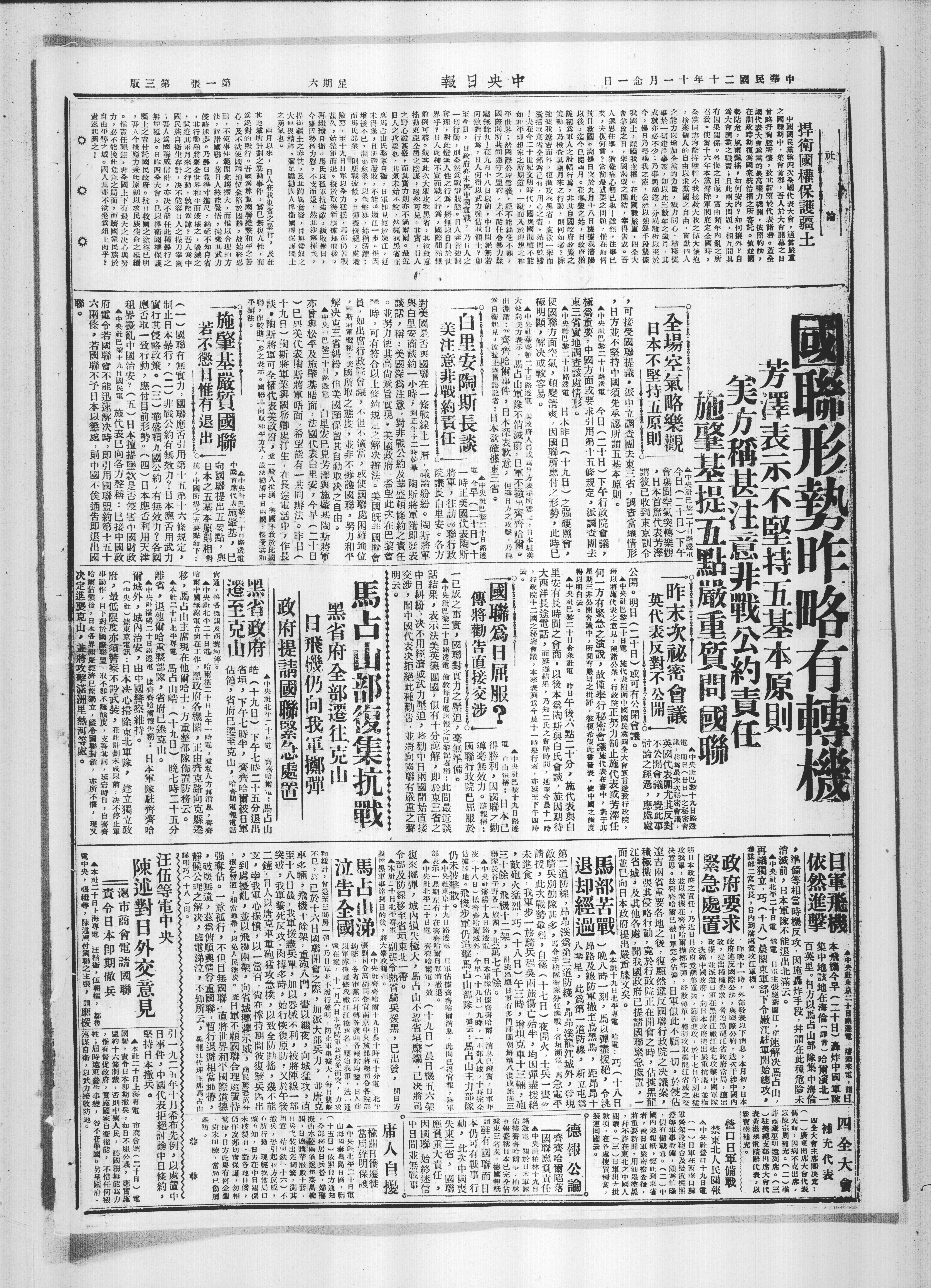 馬占山於席現在他爾哈士 方重整部隊作置防務