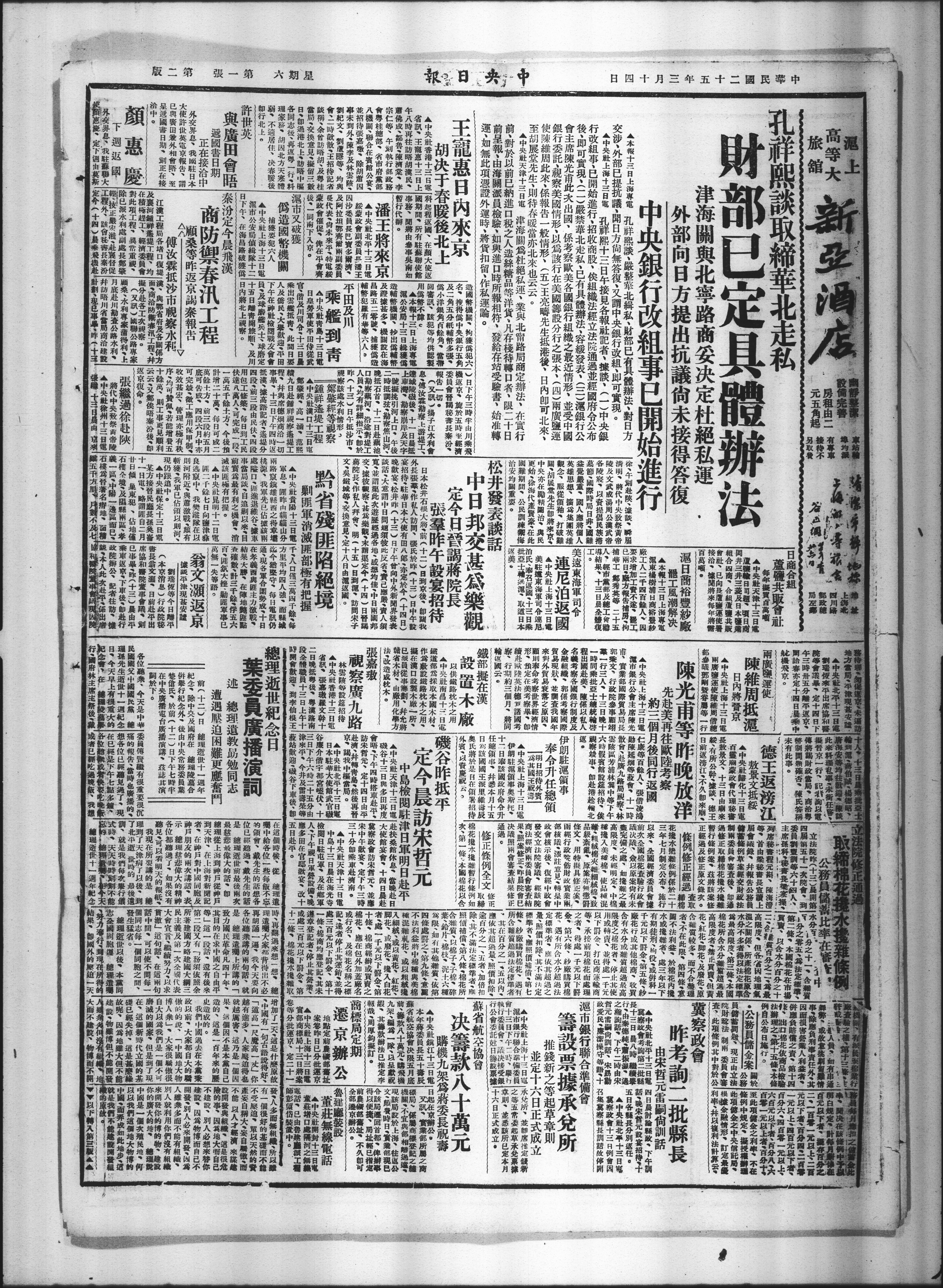 交涉、外部已提抗证、开日方尚无答复、又谓中央银行改租、即可实现。X清明。联代中央致经黄帝X文武政周公寓武