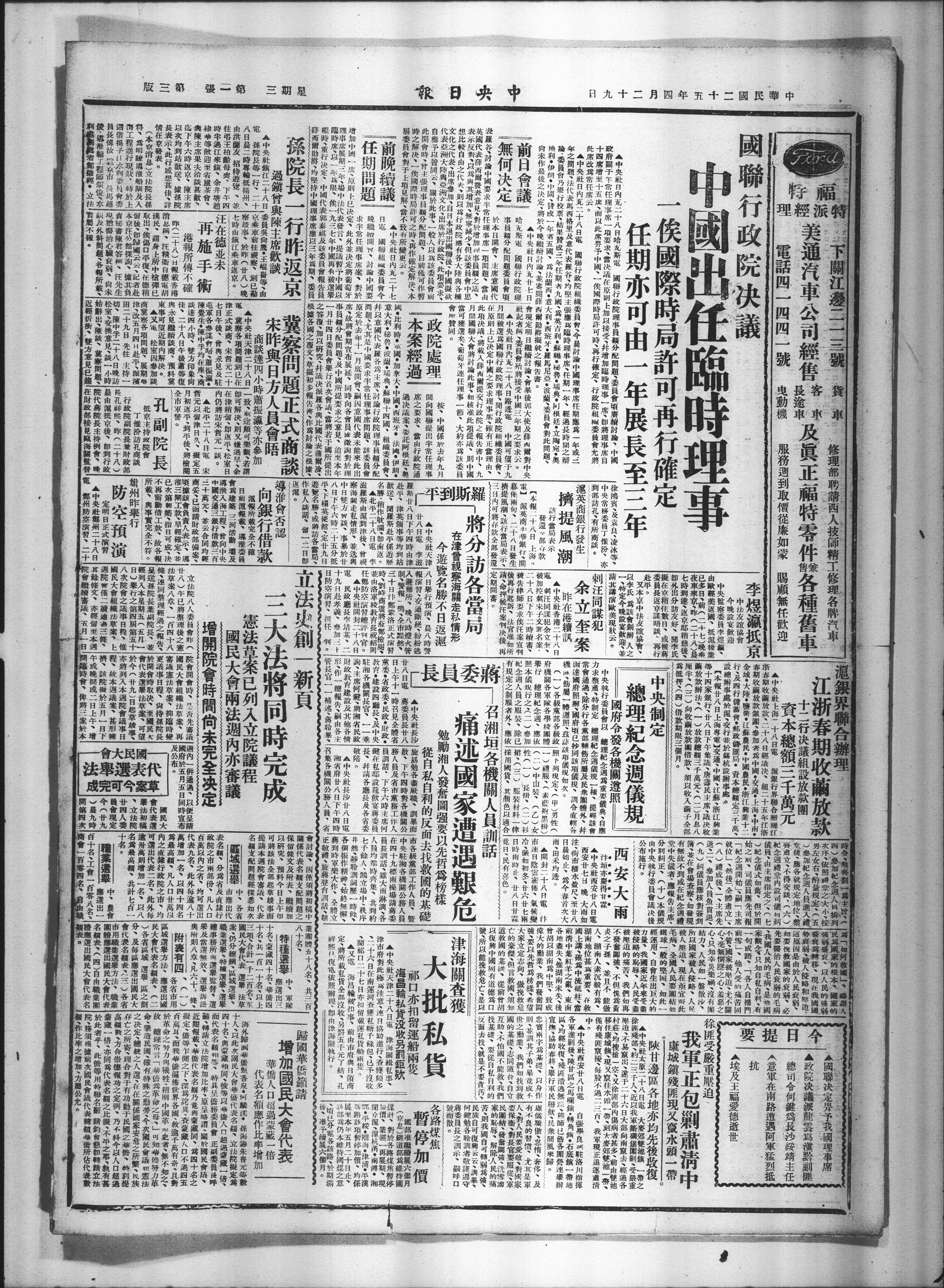 八日X蒋委员长廿八X散、下午四时对各机关公X中央驻湘各机关公务人员