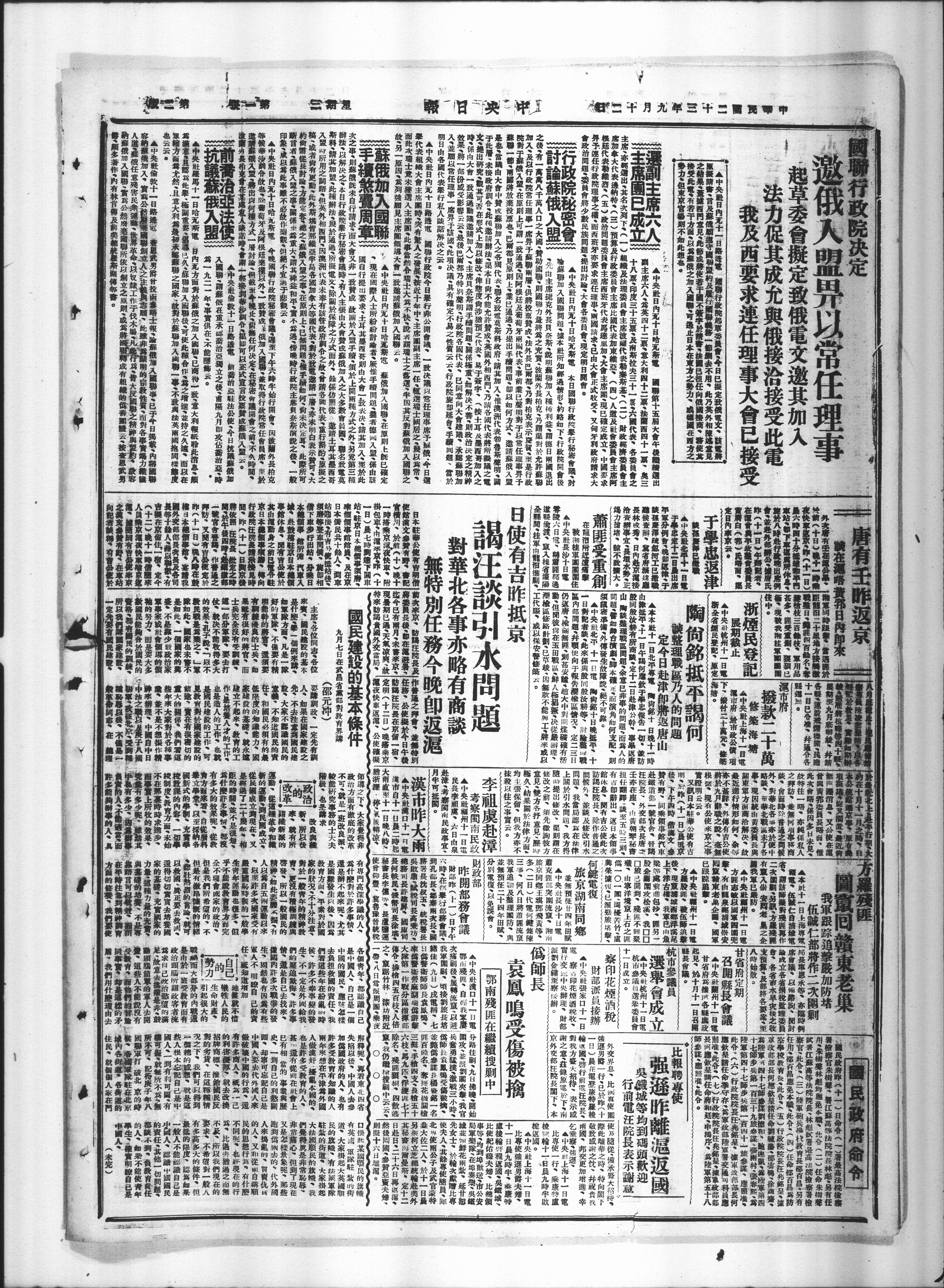 中央肚偏敦十一日路透電前治驻法公使、今日抗藏俄加人國聯、蘇俄在重承治亞立之级、甫隔九月即攻占番治亞·時為一九二一年·事實俱在不能愿飾云。人中央程馬十一日哈斯里日内方面對於蘇俄之加為满意且為此举·極關重要、倡遵已久·蘇聯加人國聯後軍方面為尤然·且意大利為a最初承懿聯之國家,故對於蘇也云云。