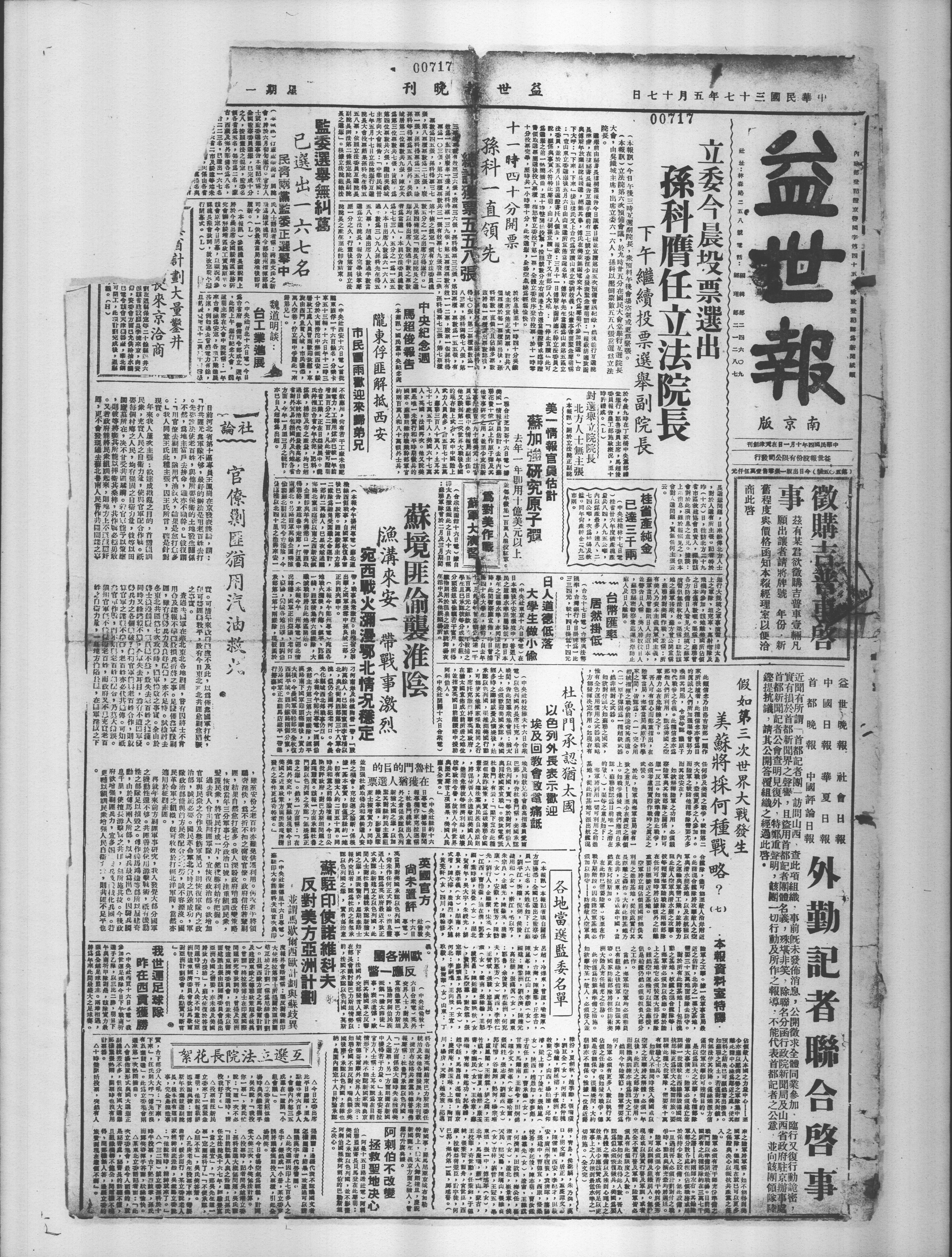 互选立法院长花絮
