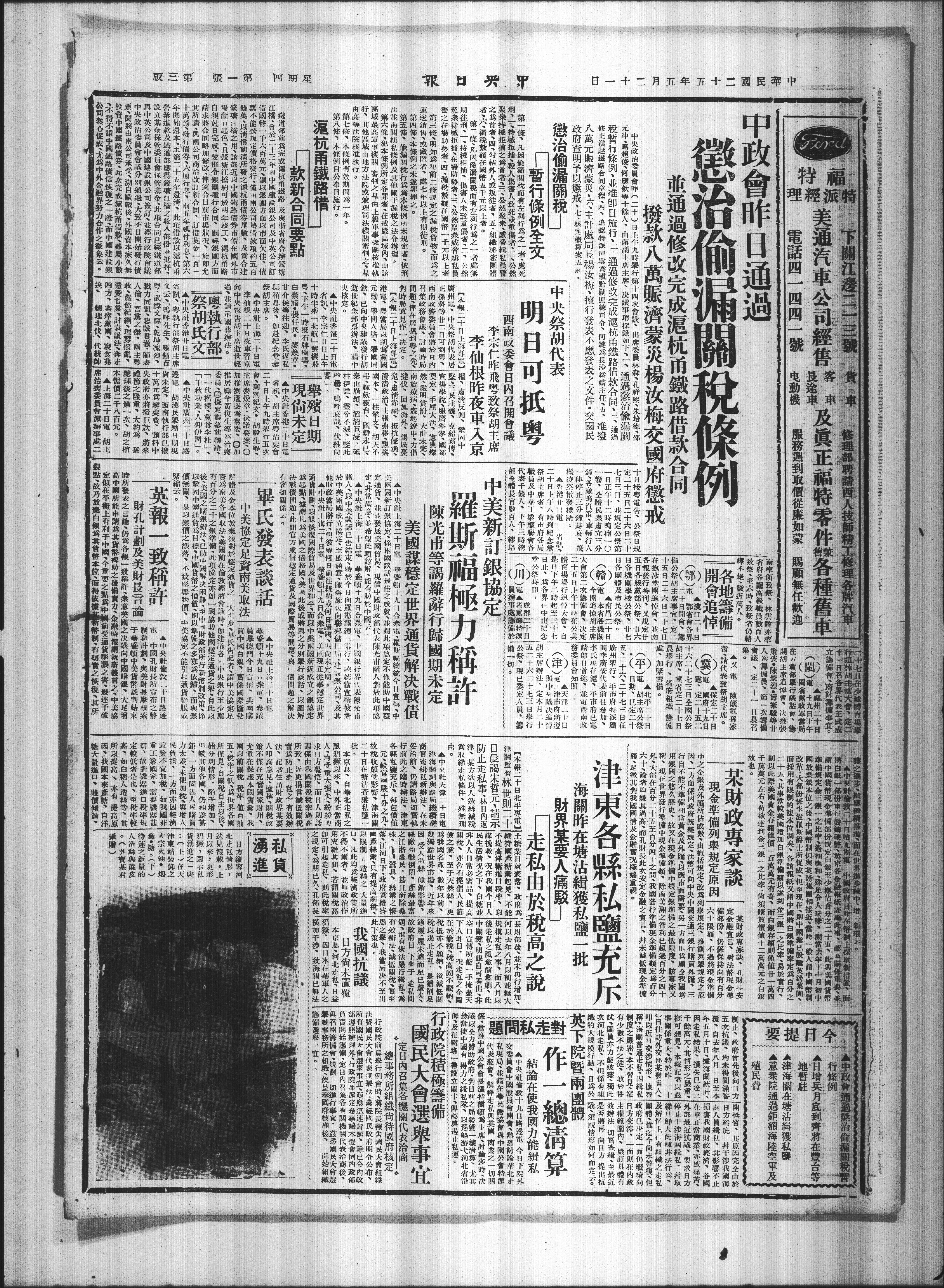 税暂行條例·准即日施行,通過修改完成杭甬鐵路借款合同、三、通巡