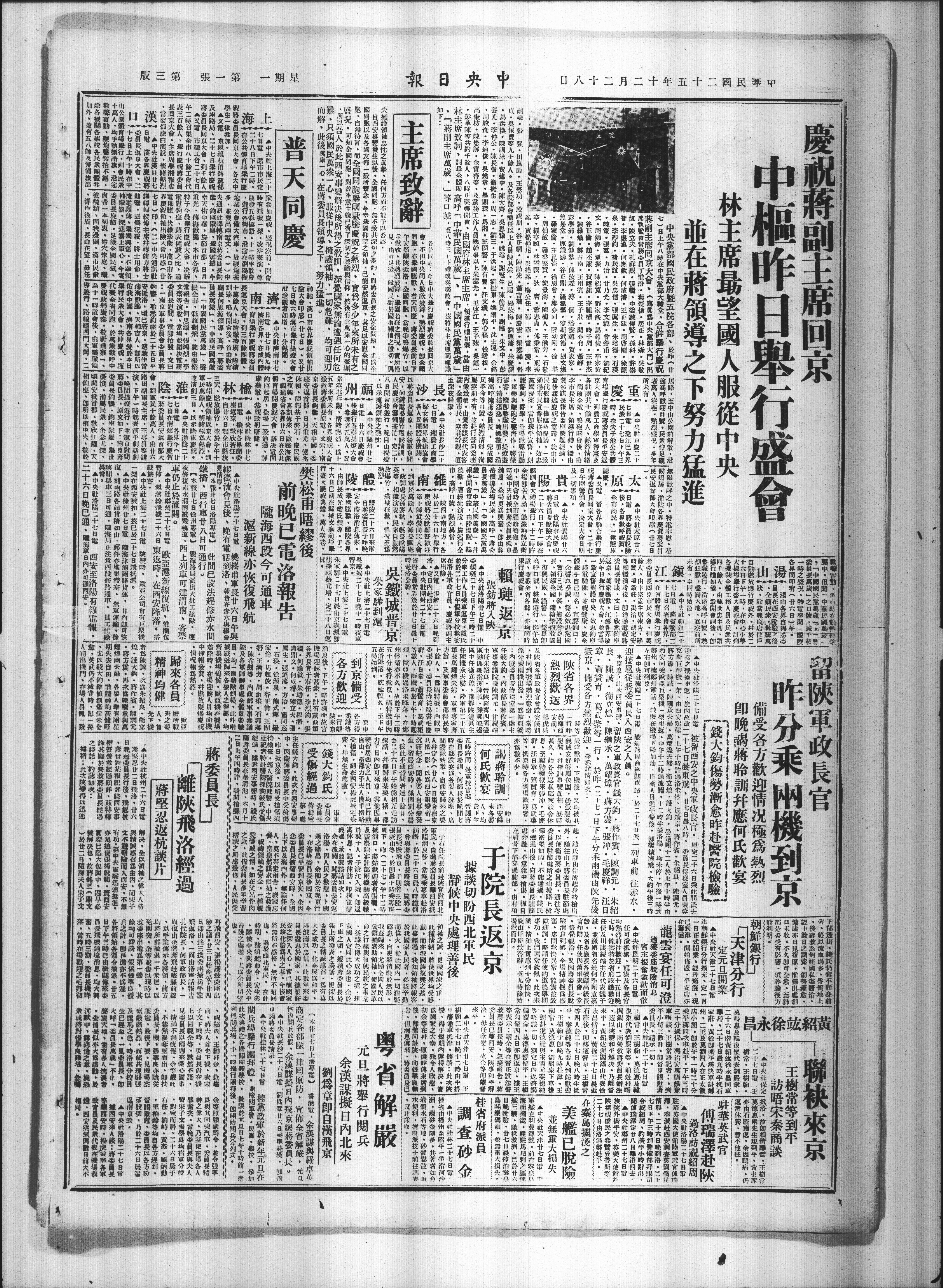 | 文章题名: | 蒋委员长 离陕飞洛经过 |