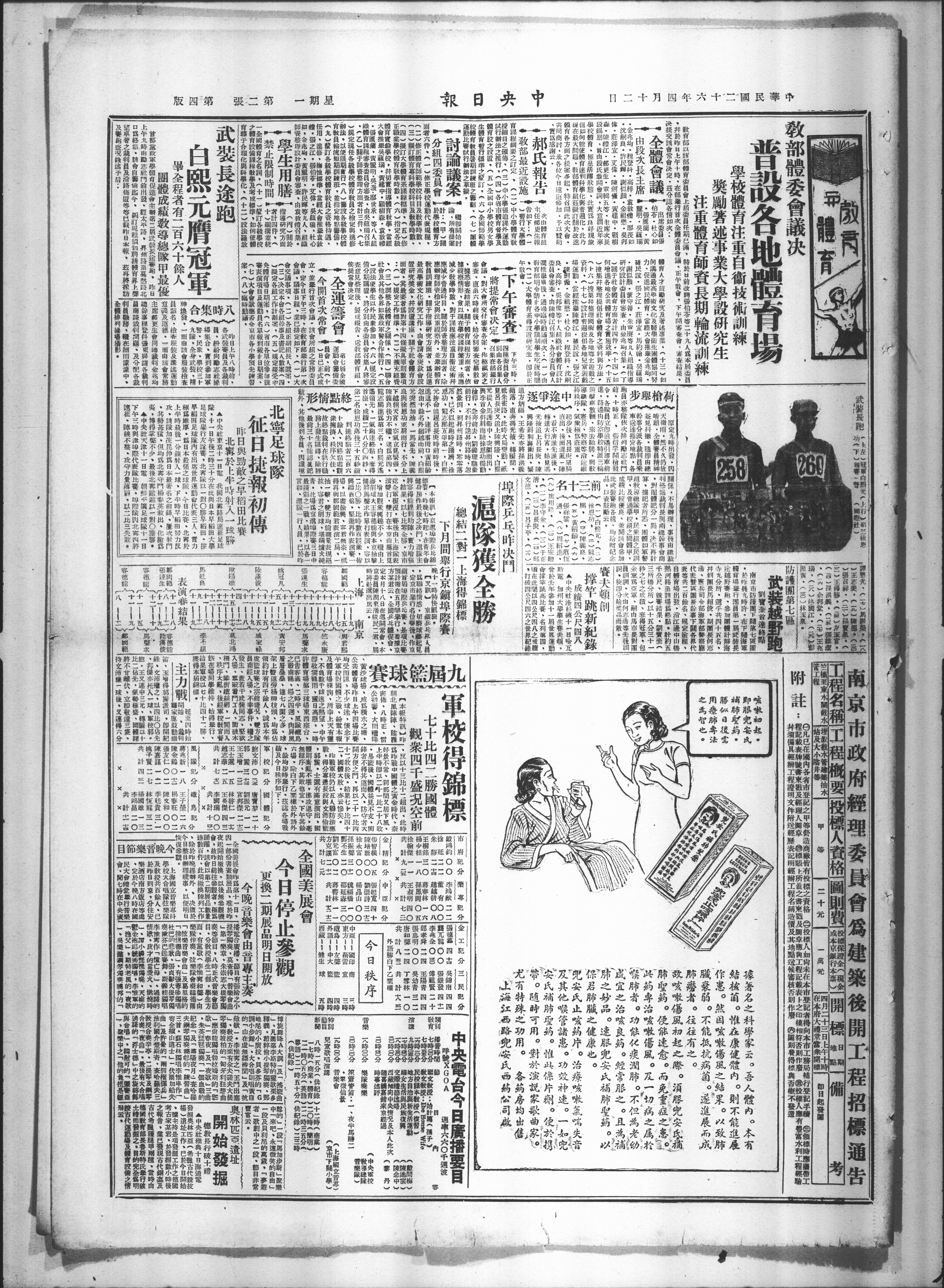 标赛、昨晚七时起,在青年会又讯京鎭乒乓界人员