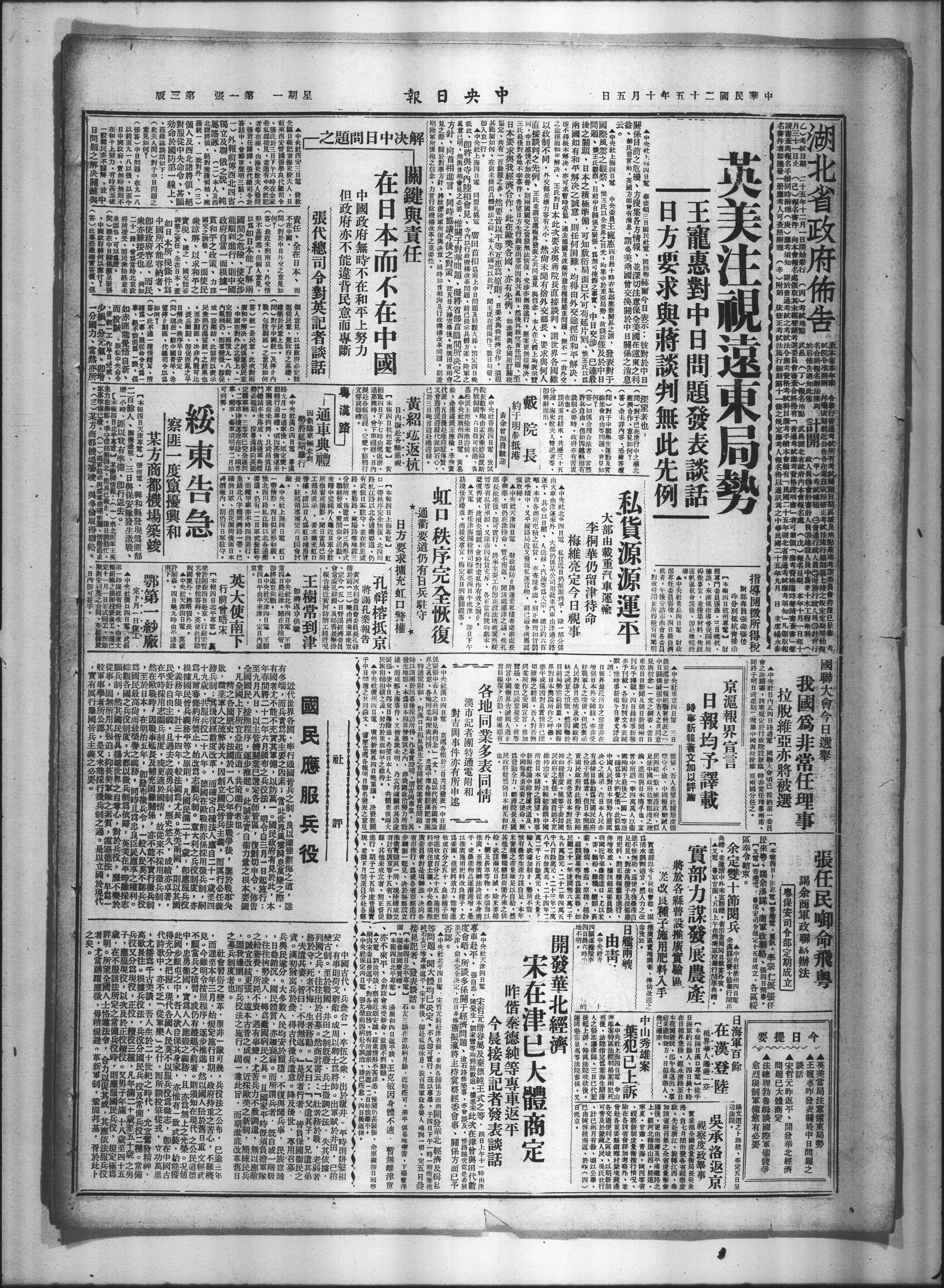 三日晨京沪廿一报纸联署发表之中日关系紧张中吾人之共同意见与信念。
