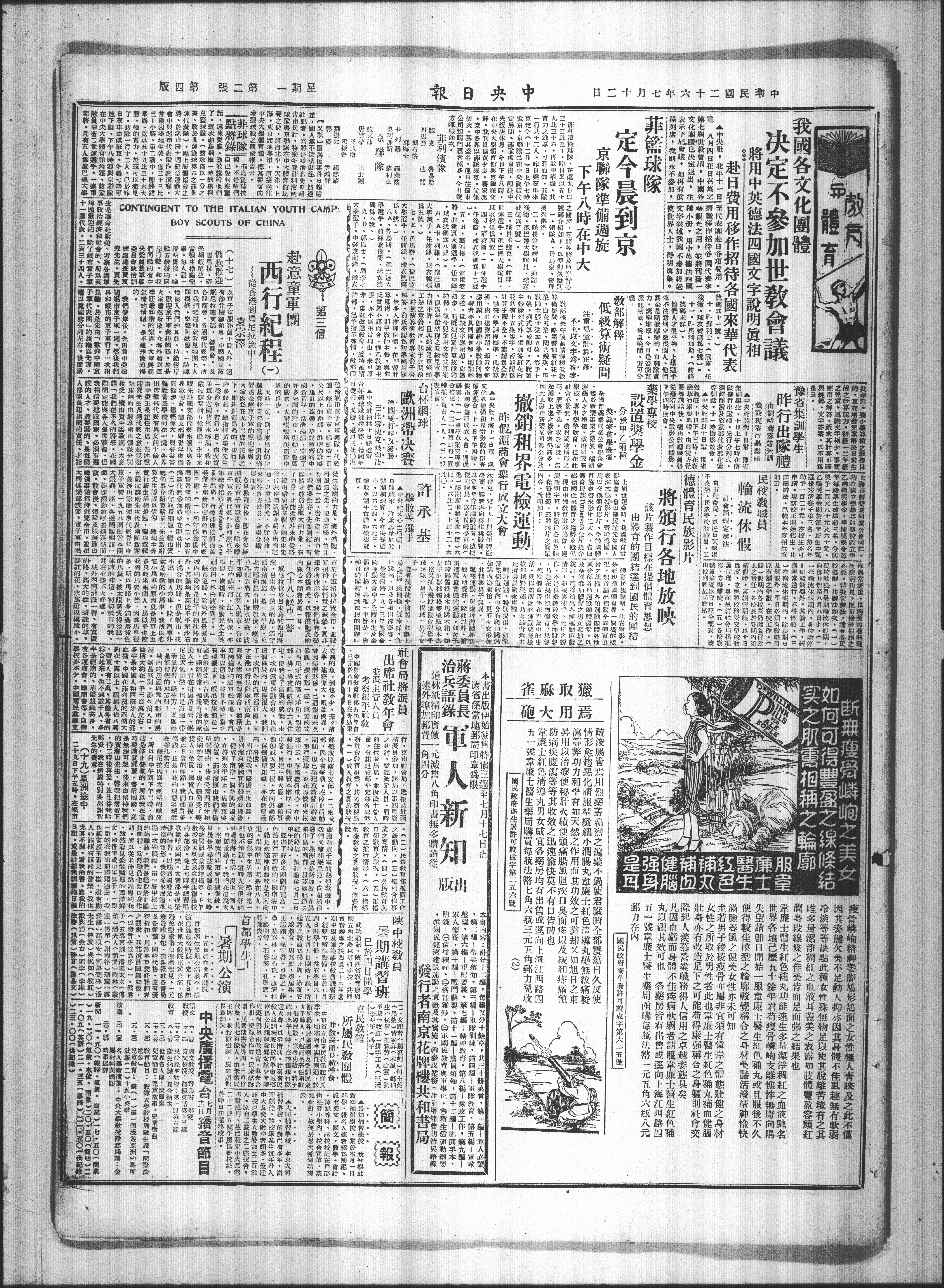 及全国参加体育之男女老幼之