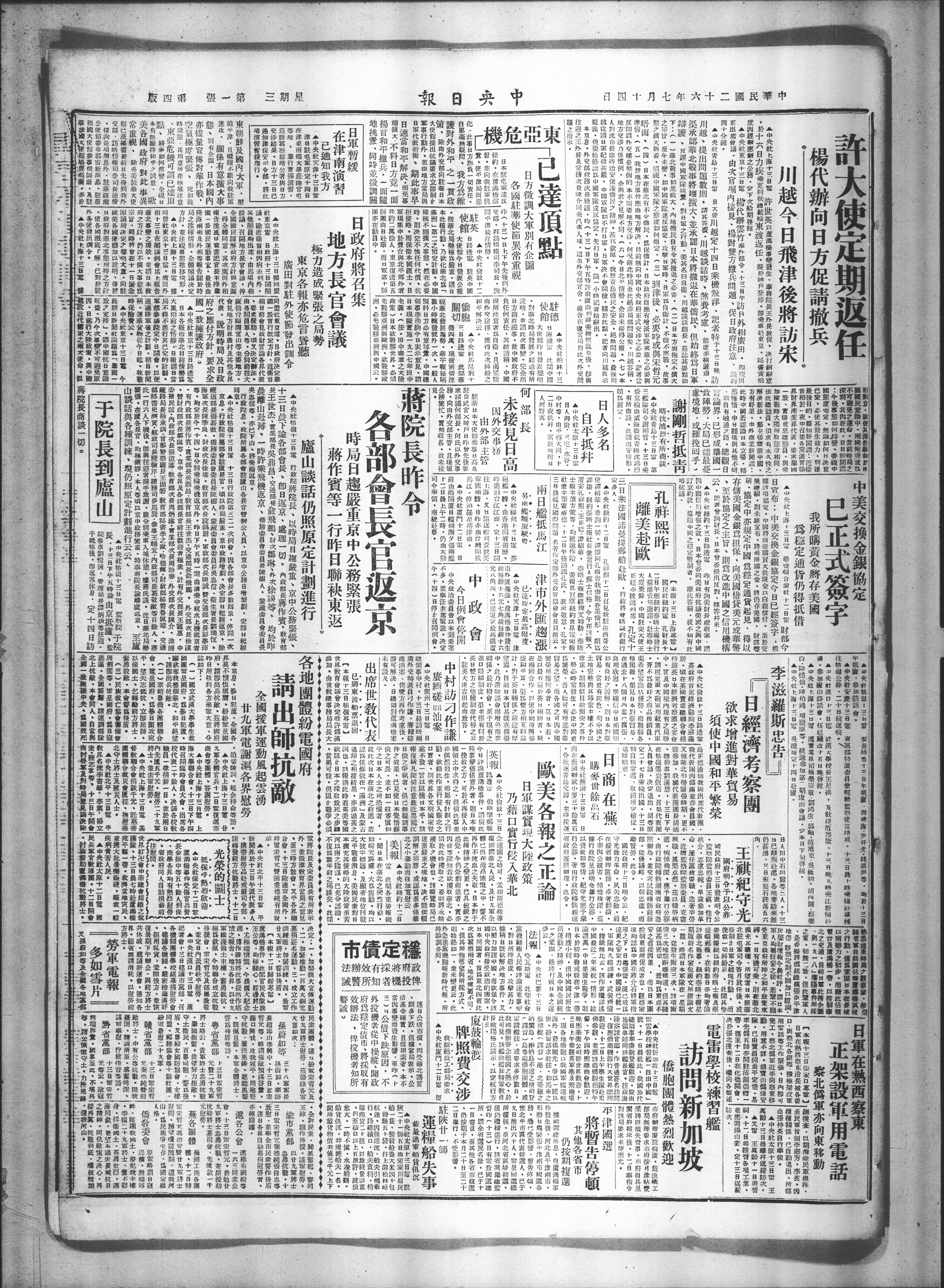 日本各报指华北目前情势爲