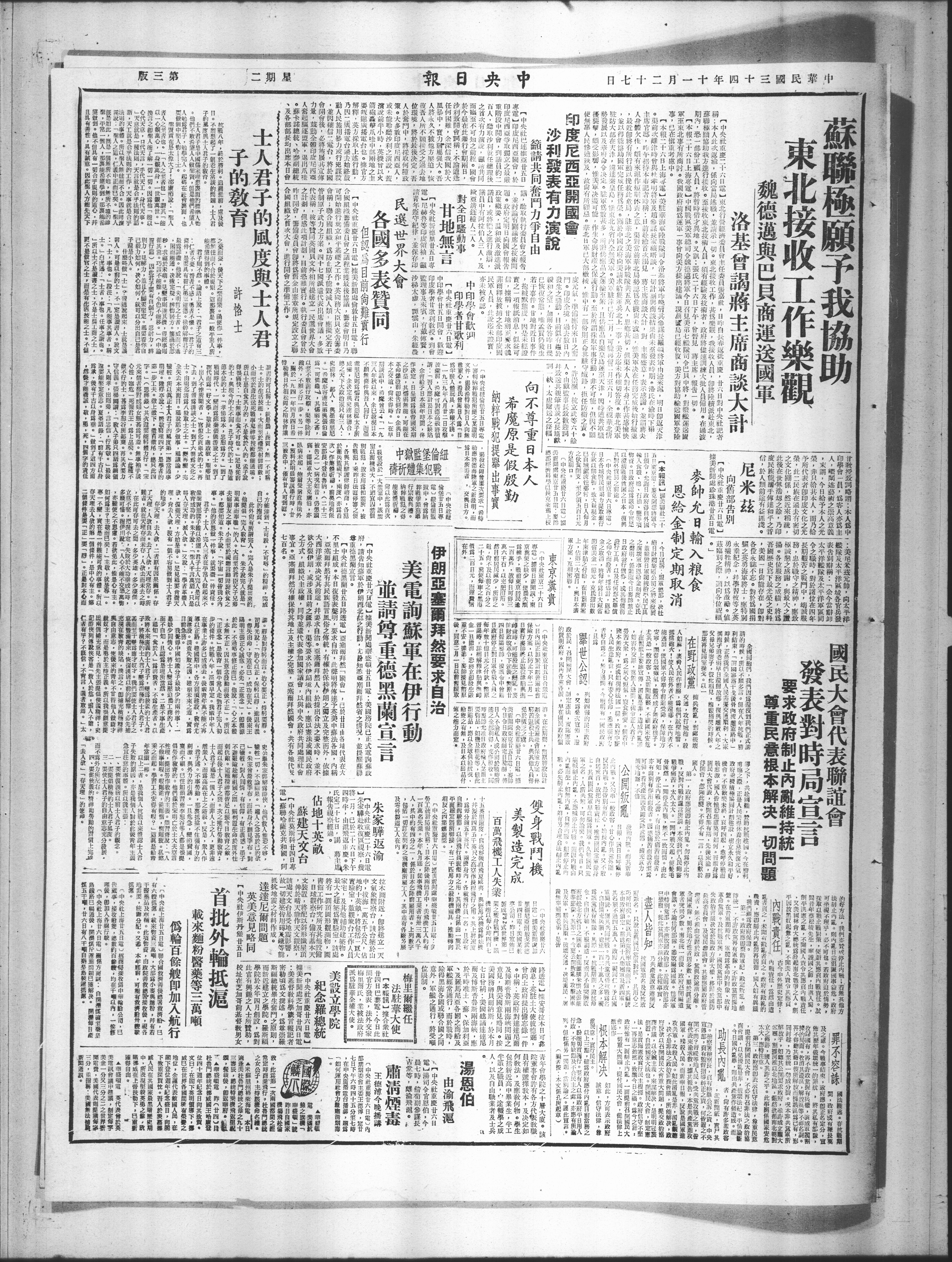 精:本人此我返谊,系向当局这职,道清示一切。东北授收工作,满惕乐观,我後收人员,即将瞳树派赴东北,