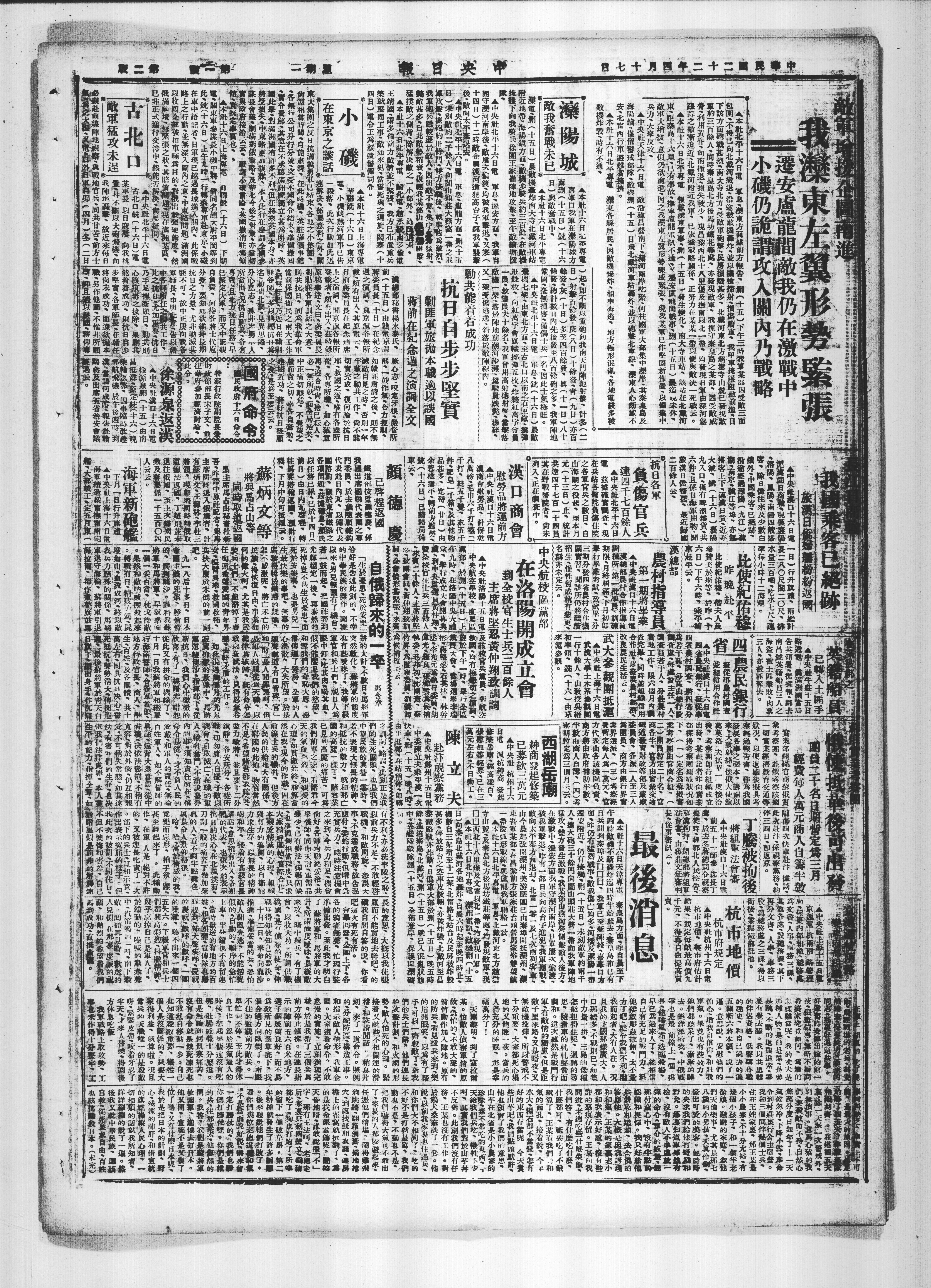 前(十五日)由贛電京謂邰二一鼓作氣合力搜劓、蔣委員長(十日)在紀念