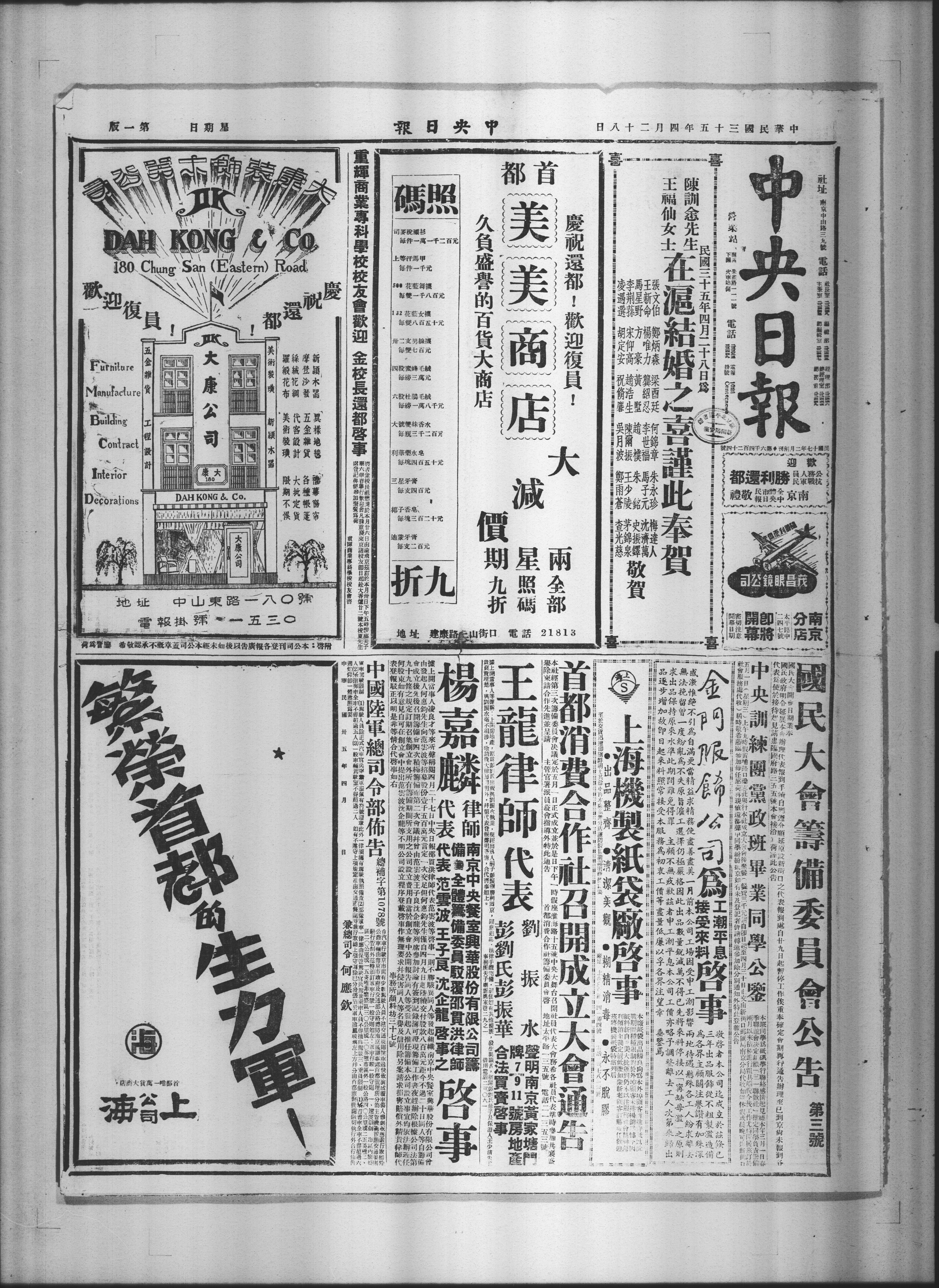 庙六刻罪举行欢迎会凡我重庆来京诸校友日起赴大香炉廿二号本校夏先生X登记俾便参加聚餐为荷X啓者金校长祖懋於本月廿六日由沦飞京兹订於本月卅日下午五时座夫子X商业专科学校校友会咨