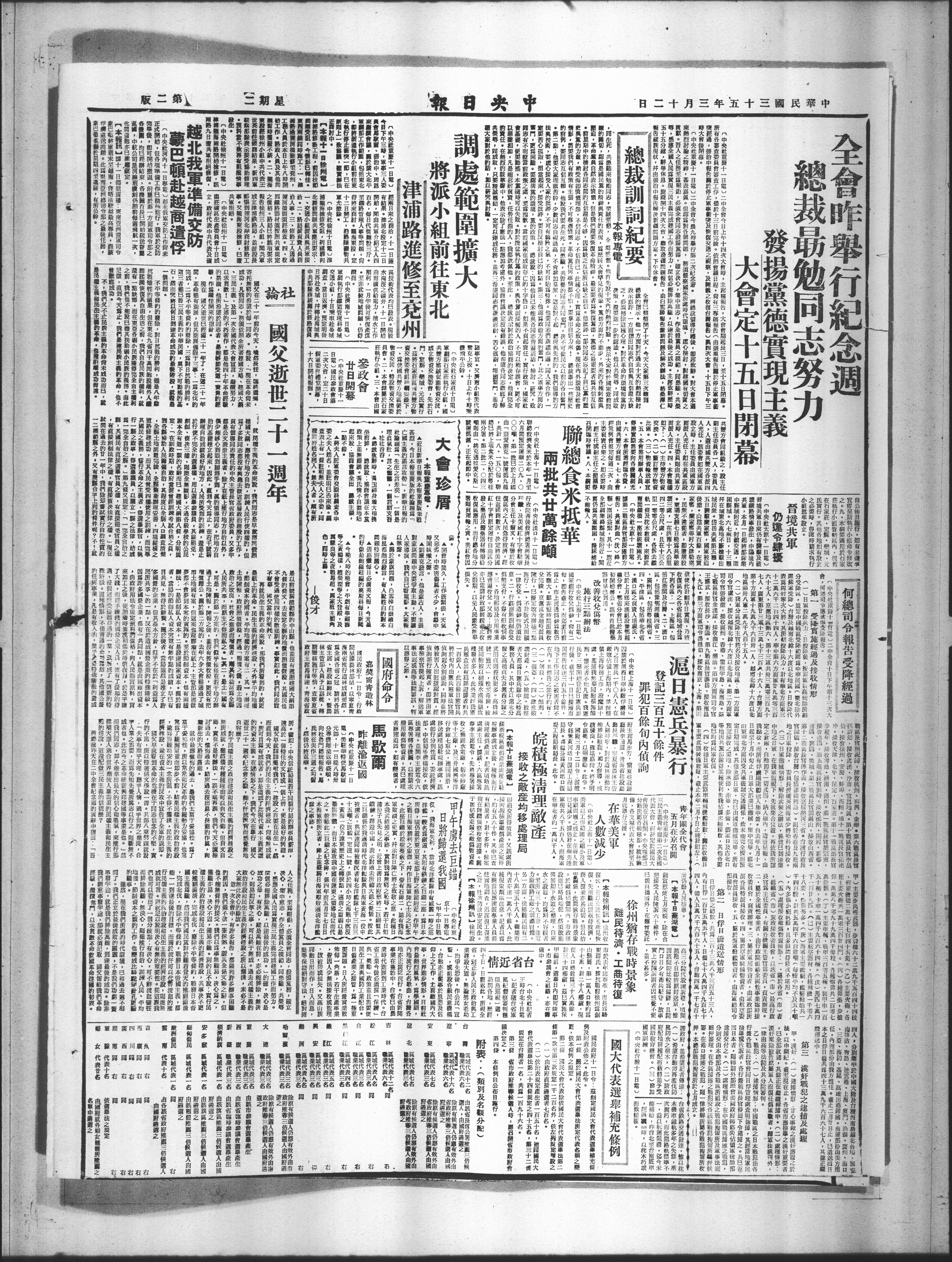 全国的报纸更必用大篇幅来刊载各方面的意见。如