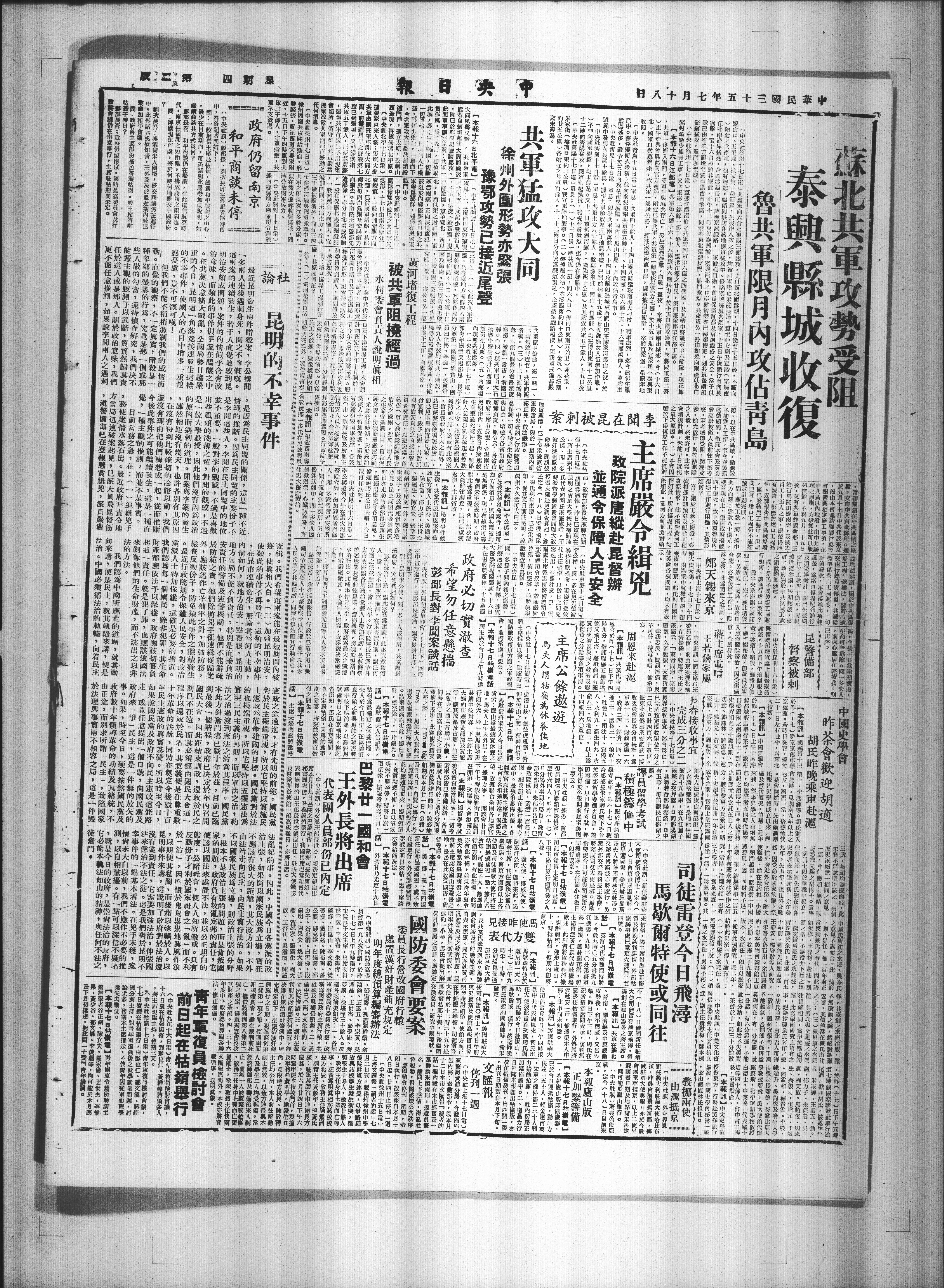【本報十六日江都笔】共罪第六十大、十八两旅共六履兵力,从十五日攻興,縣軍二