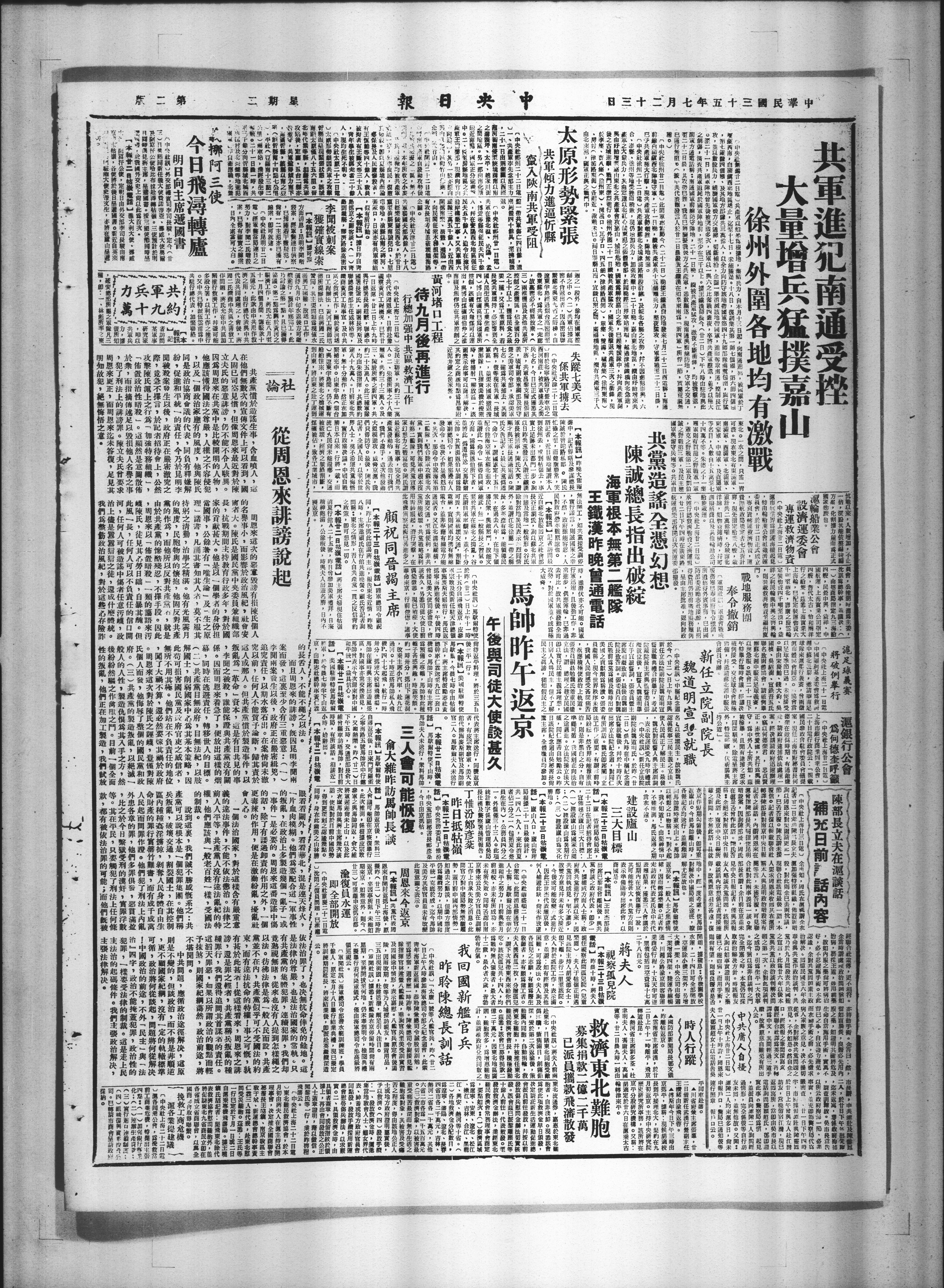中央社天津廿二日电