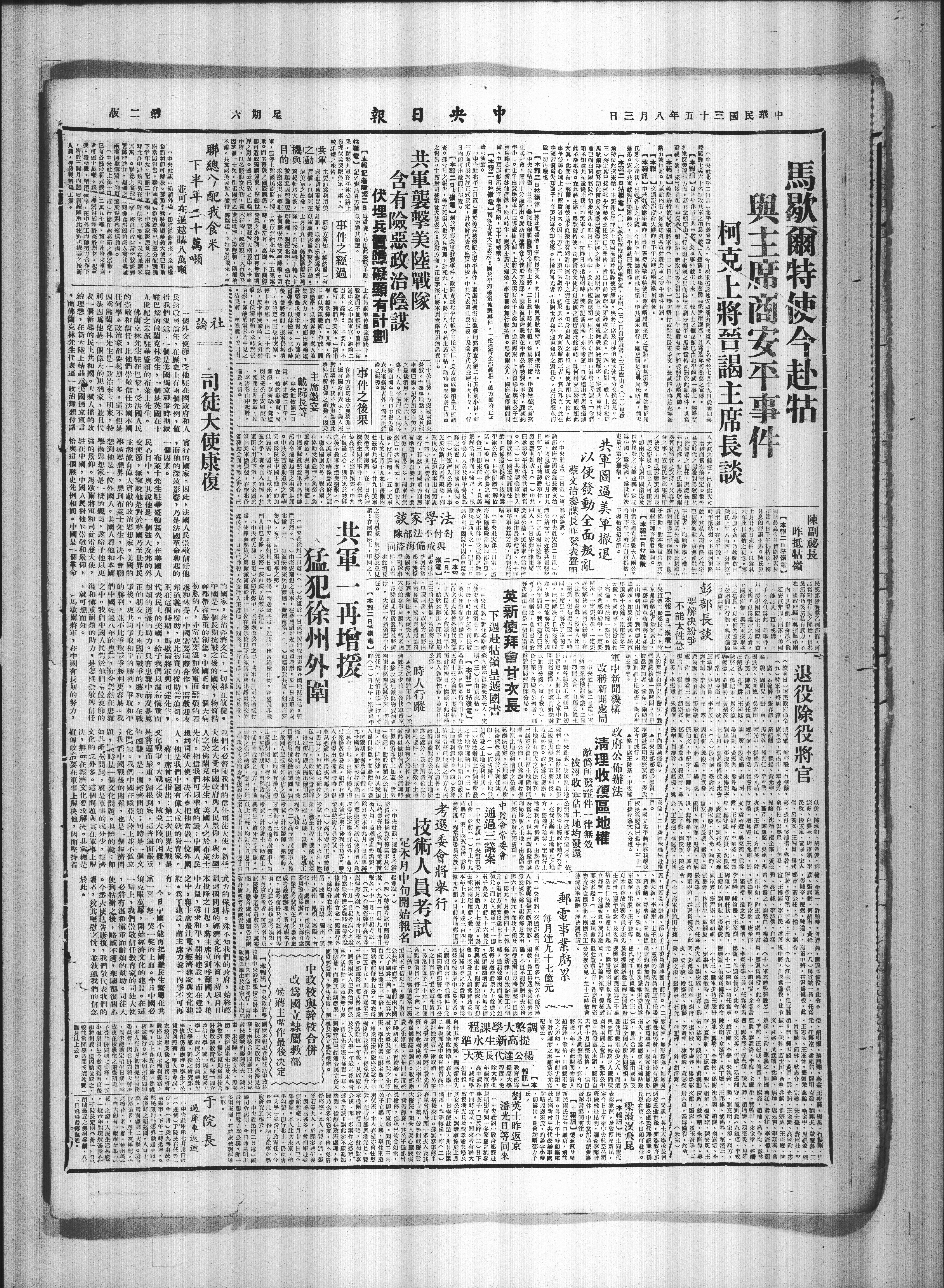 ○中央社徐州二日电〇(一〇共军於一日复增援向徐州东南外围地区猛犯●战
