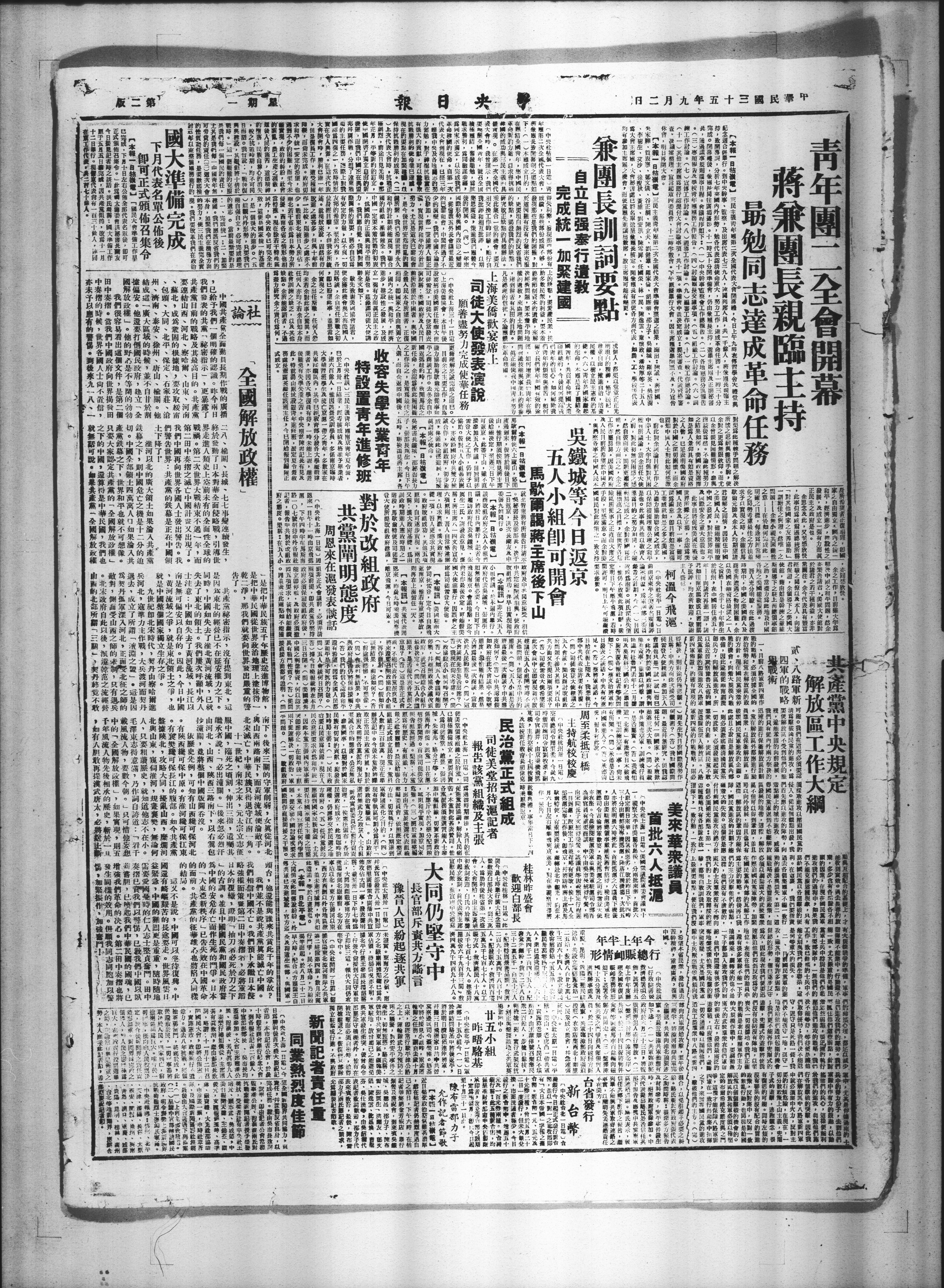(中央秋认U三民主溪青年团南京青年夏合管,