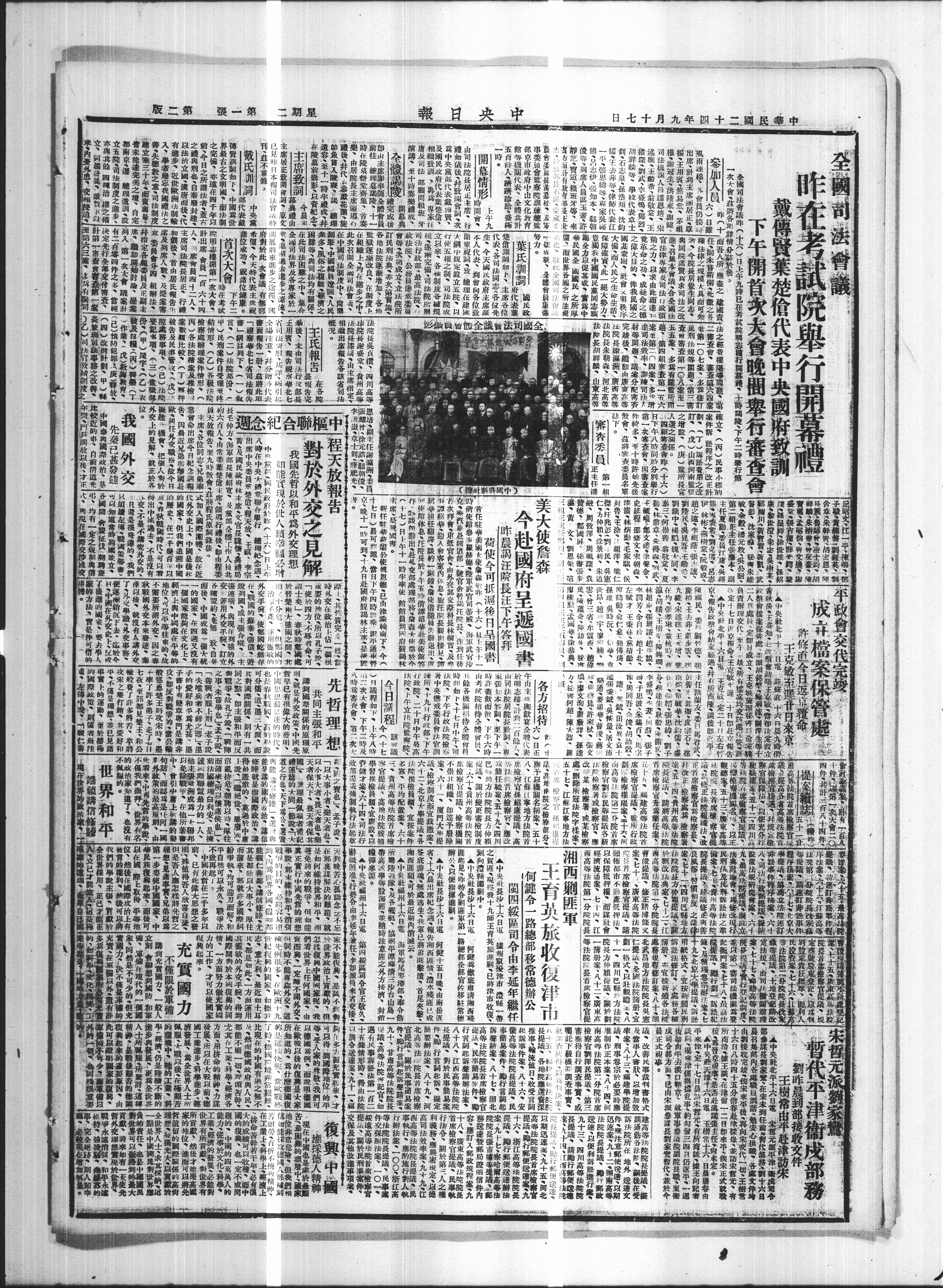 任此司法困難之中、集 因等、與司法均有開任 多、風俗之机鞋·經濟 、中國幅人 中國司法制度中、尚 此次召開全國司法會 粗上·均在進步之中 狱逐改良、在制度 各地法院逐增加各 訂民刑法典、亦次第實地 曾等·次第成立、立法院 政法院、公務員戒委 司法行政部、最高法院、 模·逐渐完偏·司法院所 立以來、各制度各 行使五權之制、司法院 網中规定設立五院、 简带祝、放總理在建 本人代表、到會向各位 生·今天國民政府主 代表、各司法同志各 楚信訓如卜、主席各