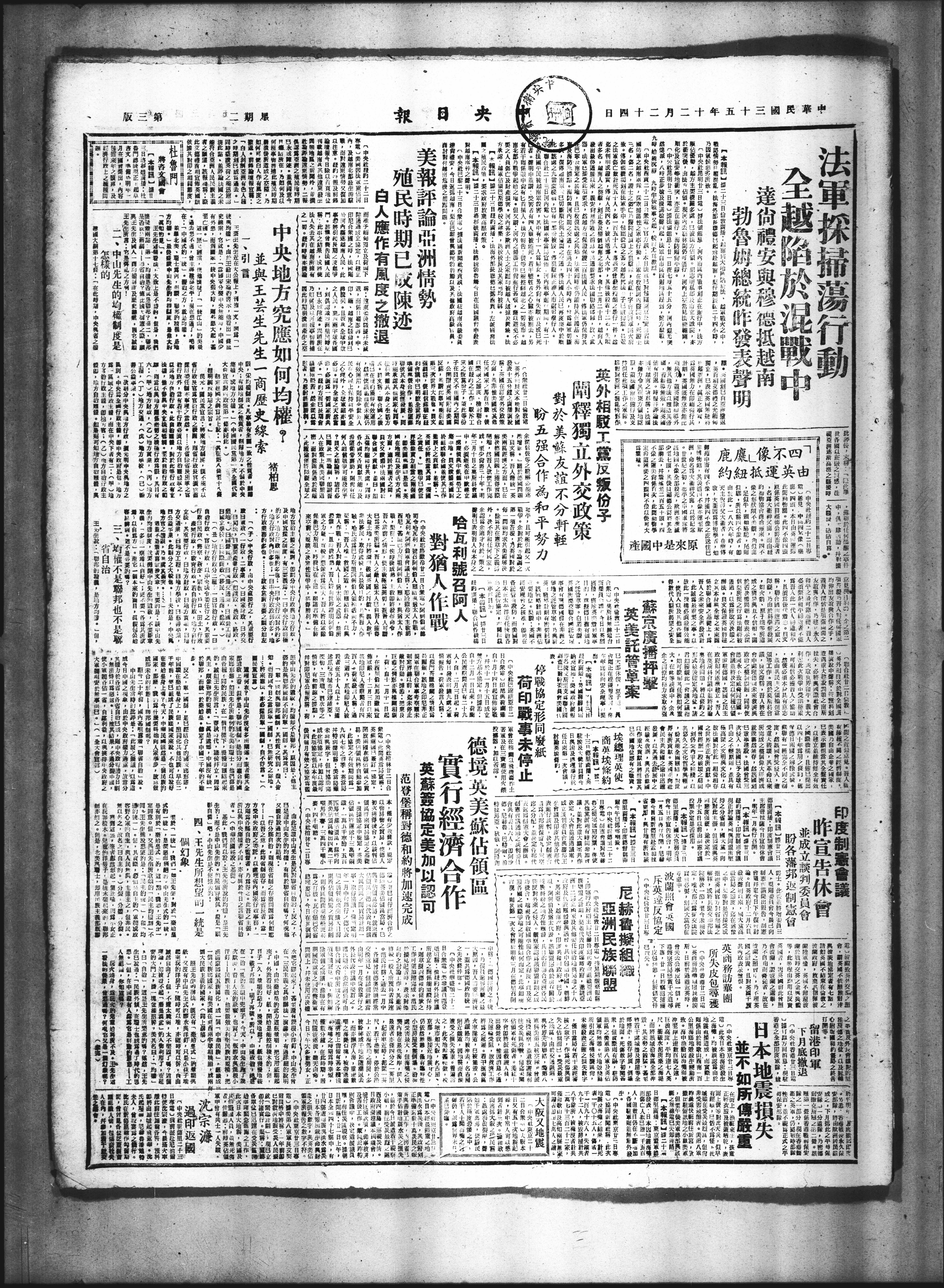 發表十五分鍵之播演,只文,吾人一英第一项答履,乃英對於