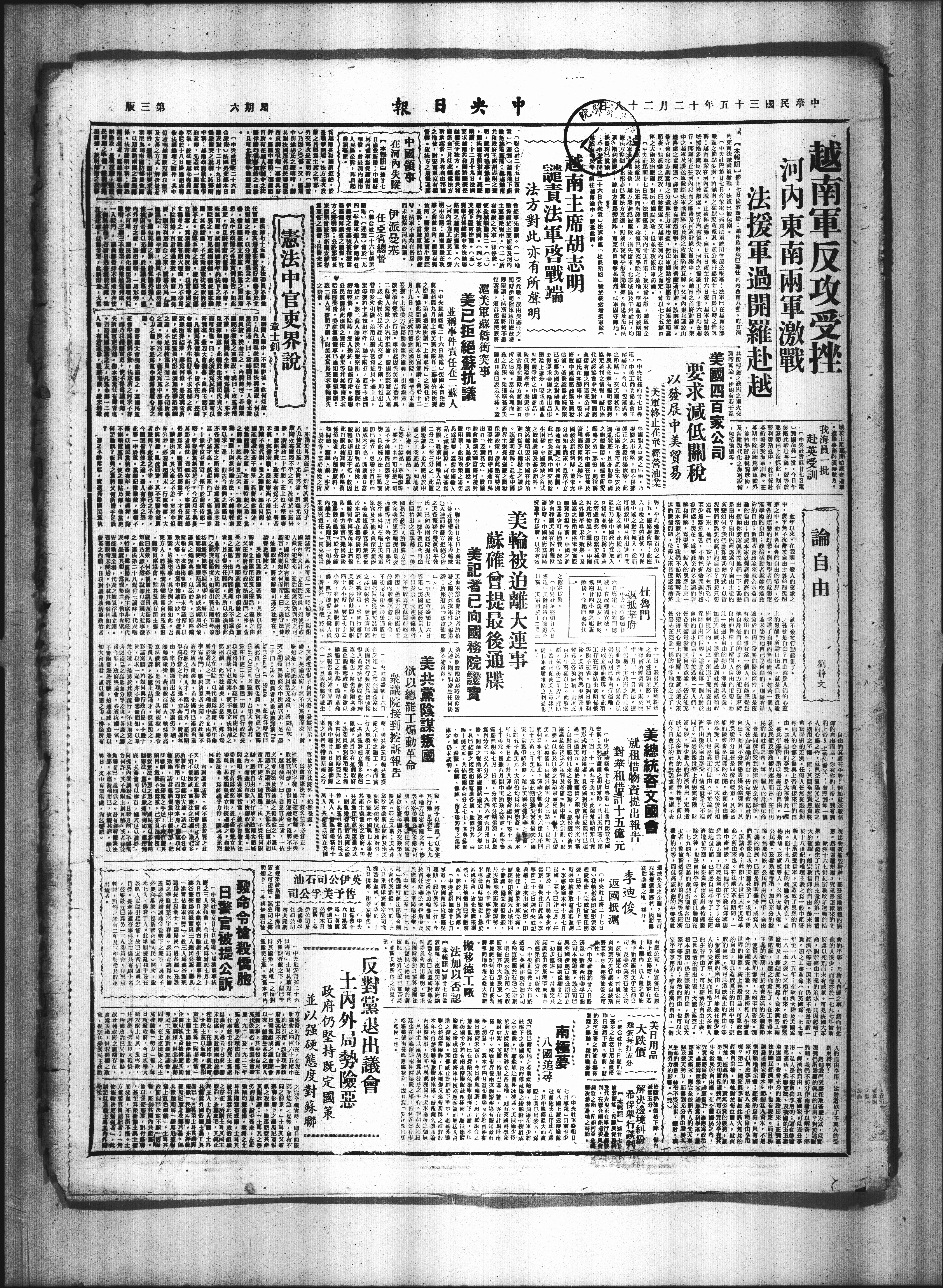 越南军队在河内区城·正极活动,自廿五日夜至廿六日夜,越军曾对核