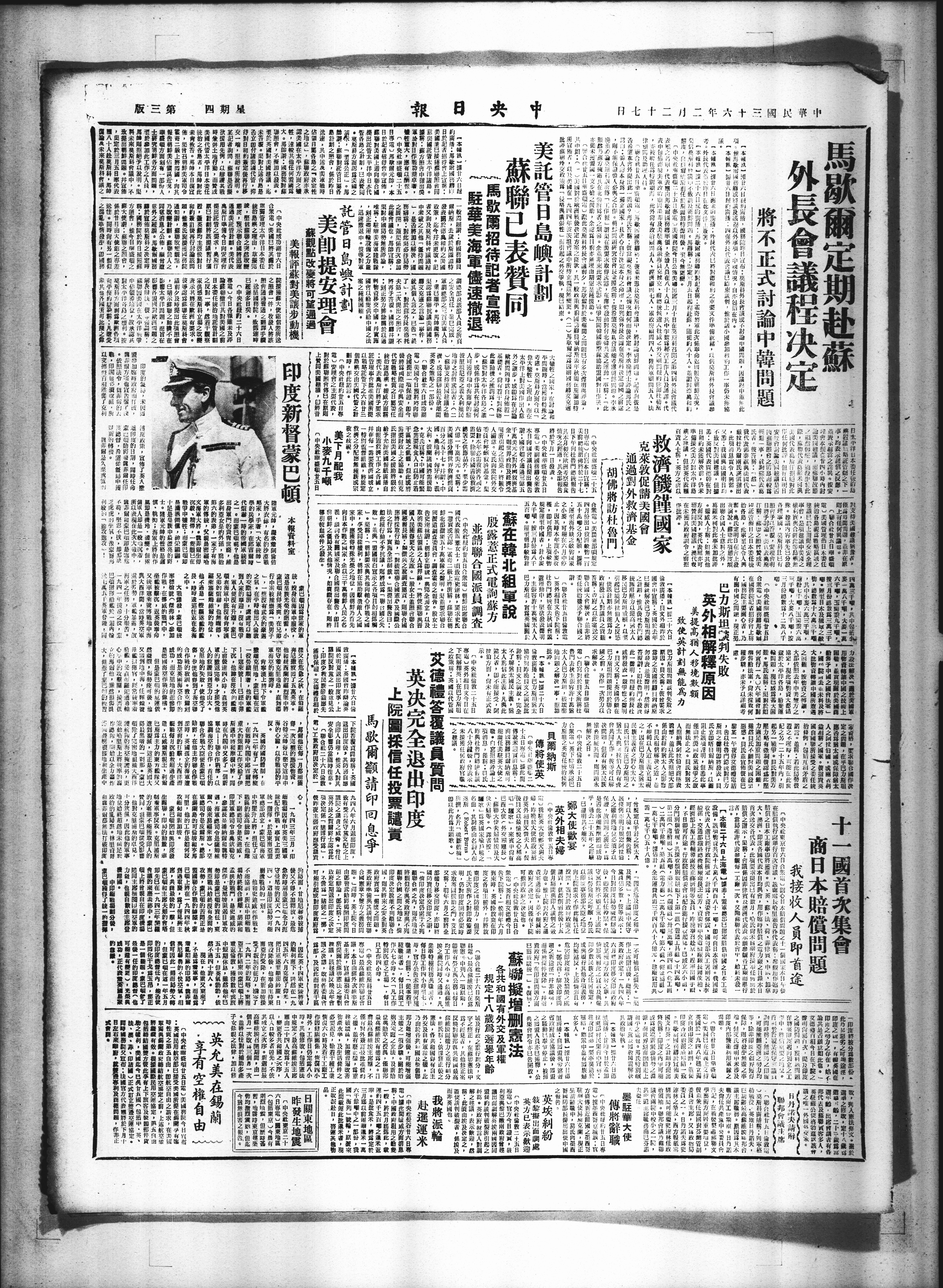 【本朝筑】溢廿六日伦X下院答覆资间时称·英国X九四八年六月返出印度,