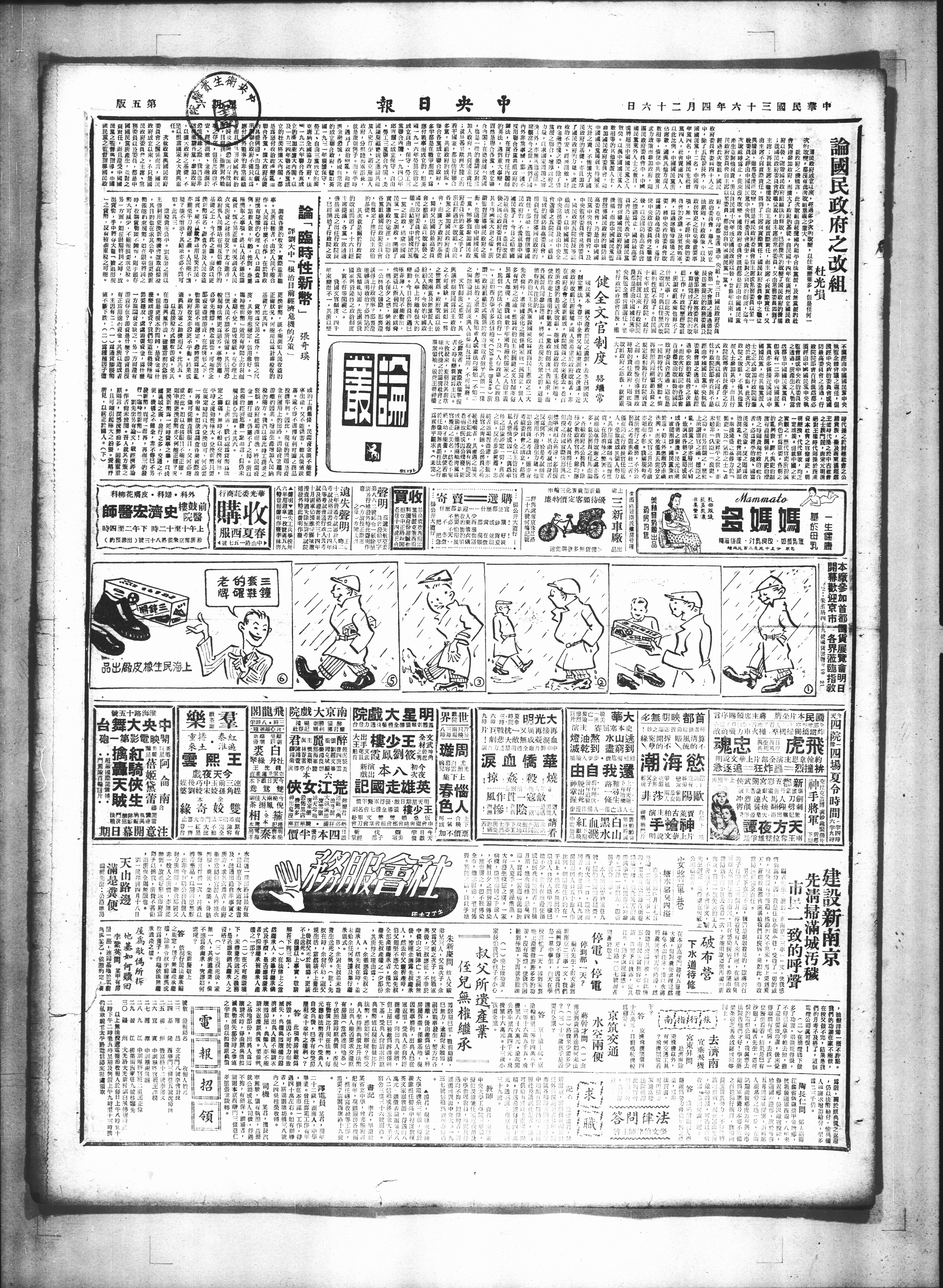府,在平都是透过中央組,廿三日國口 就政府之機携言,此大歌由延覆國内和平合法派,及無篇 次的以,都没有此夹的意羲之重大 民敢府成立以来,經過多少次的,以往歇多,但是 國民政府之改租