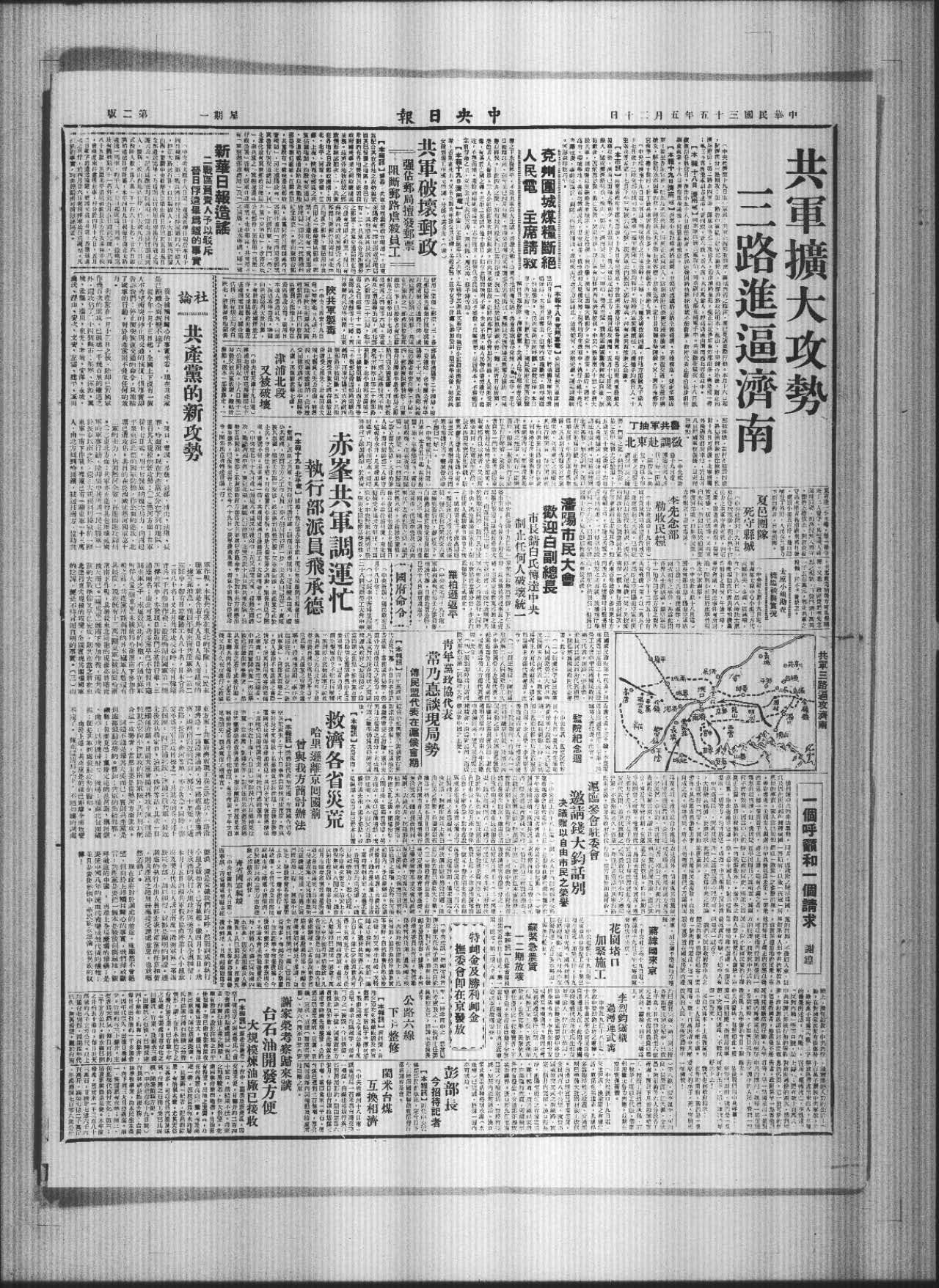 〔中央社沈阳十九日电市市民今晨在市府广举行欢迎白副总长莅渖大,由董市长担任主席:致欢迎词时:请白氏转达央,迅使军队国家化,制任何人破坏政令军令之统,拯救东北三千余万同胞须发苍白之市民代表张德,报告东北民衆遭受共军纲痛苦情戕,声泪俱下。副总长继于接受市长所献国之干城」锦旗后,向羣演讲,代表中央及元首向北公老致慰问之意。继谓战八年,不避惨烈牺牲,以收复东北领土主权为目,不幸于胜利后,东北同愼受非法武力摧残,至为心。中央对东北关切至殷望东北同胞提高警觉性。