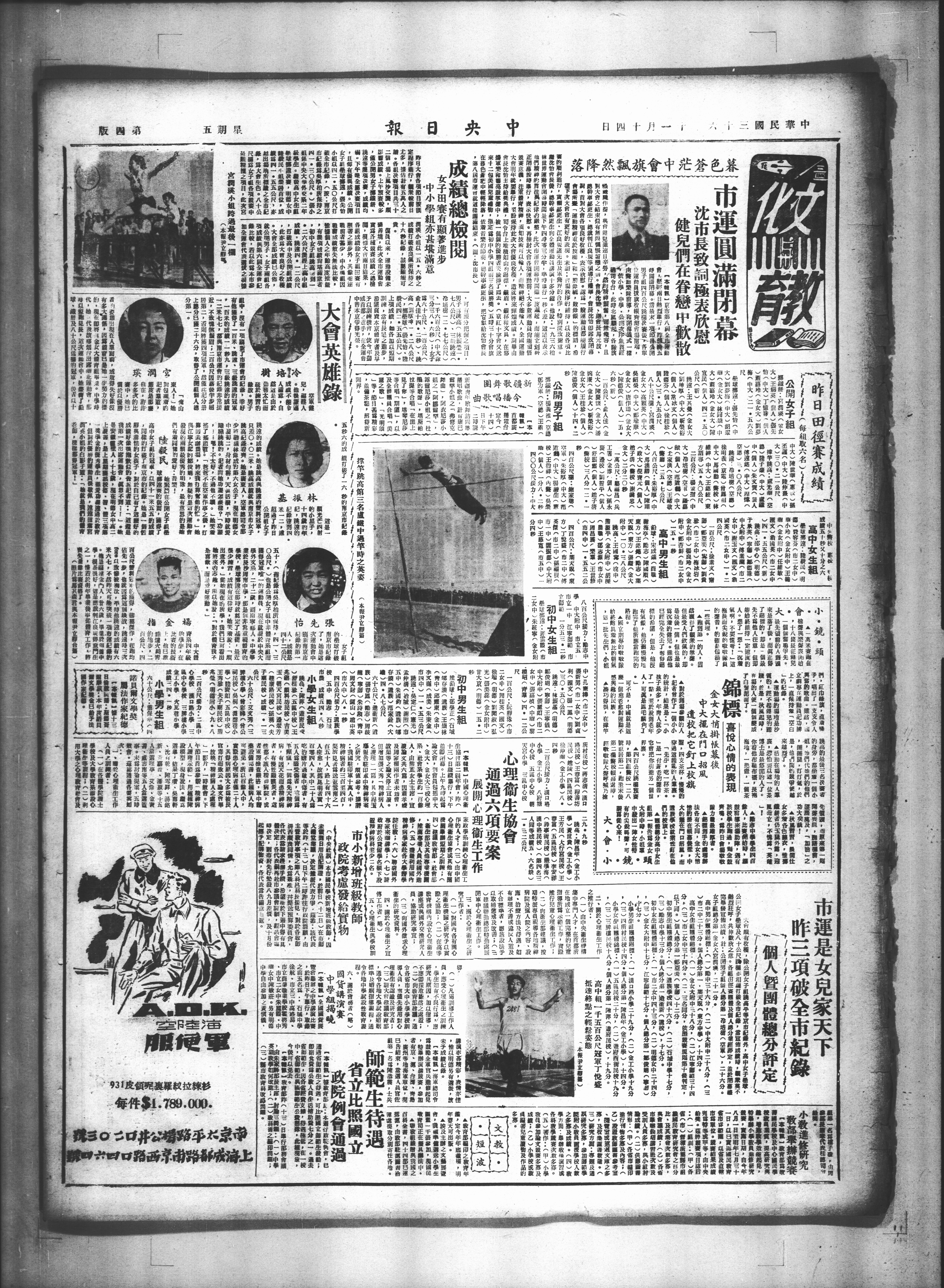 热烈狂呼,共伸欢欣之意。各也田径赛体及个人总分业经评定,并於闭幕礼