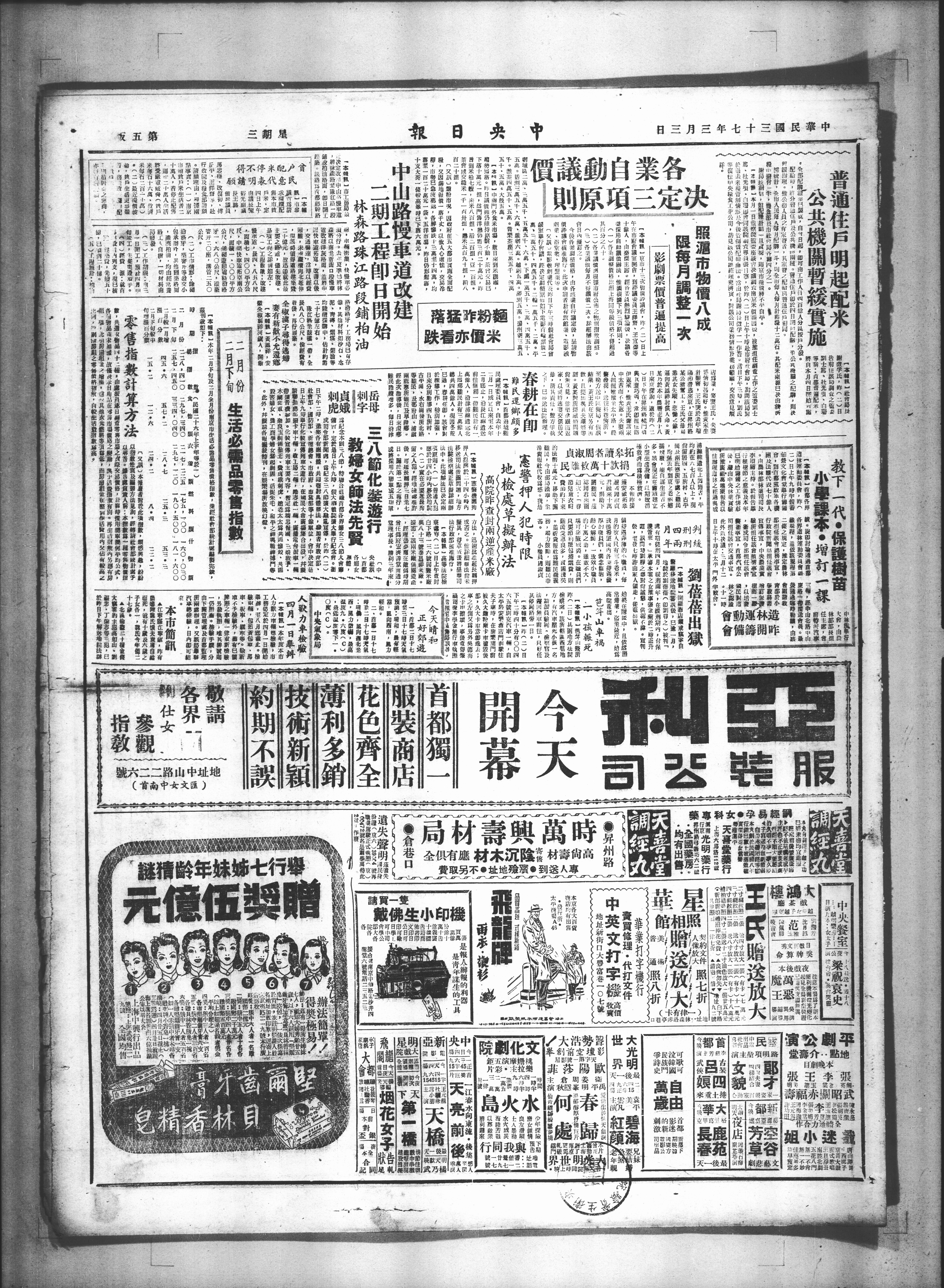 动自業各原项三定决###照市物八成【本银京市十三次物價,昨(二)日上限每月调整一次影劇票普遍提高