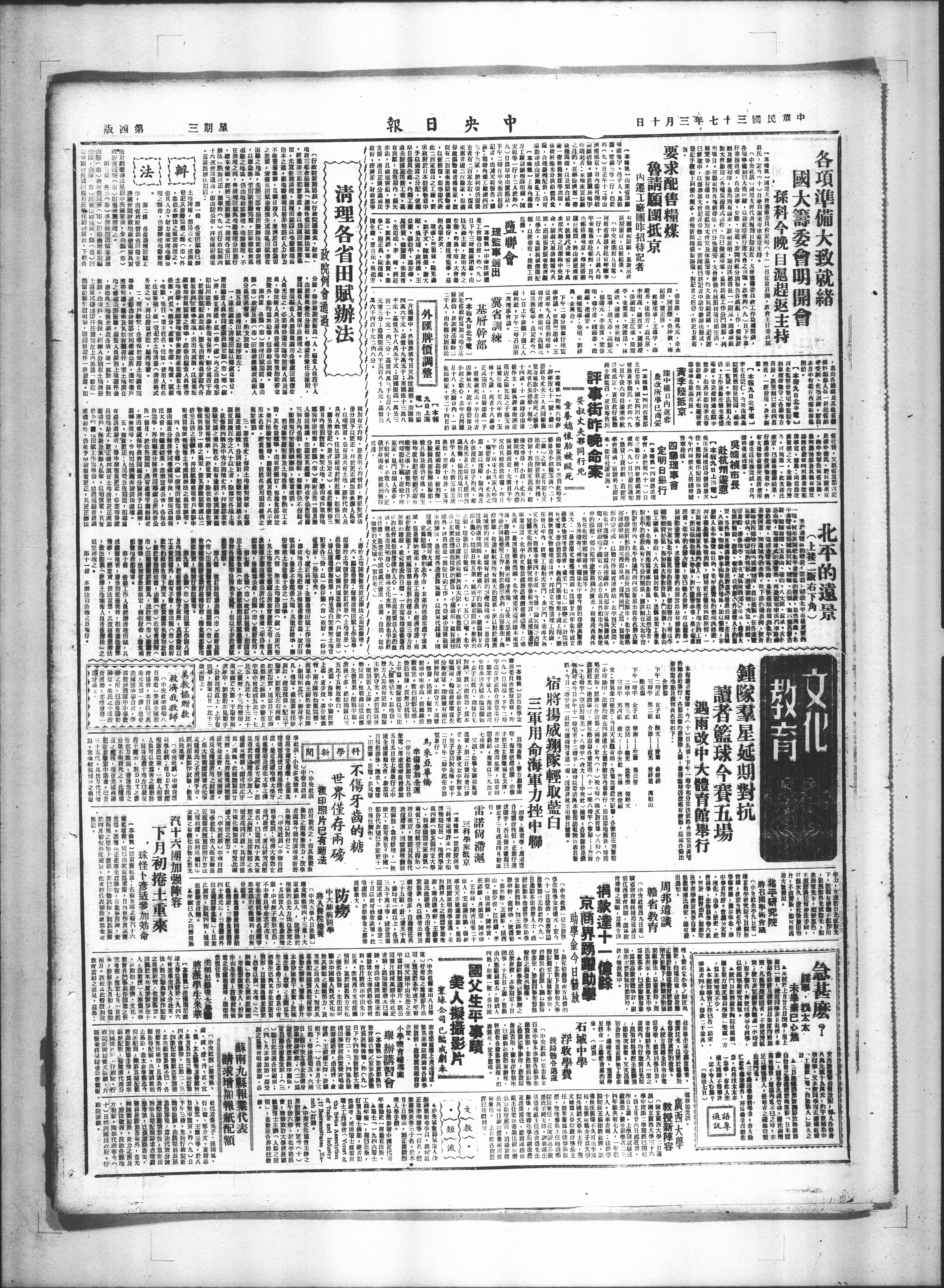 【本载九日北平電