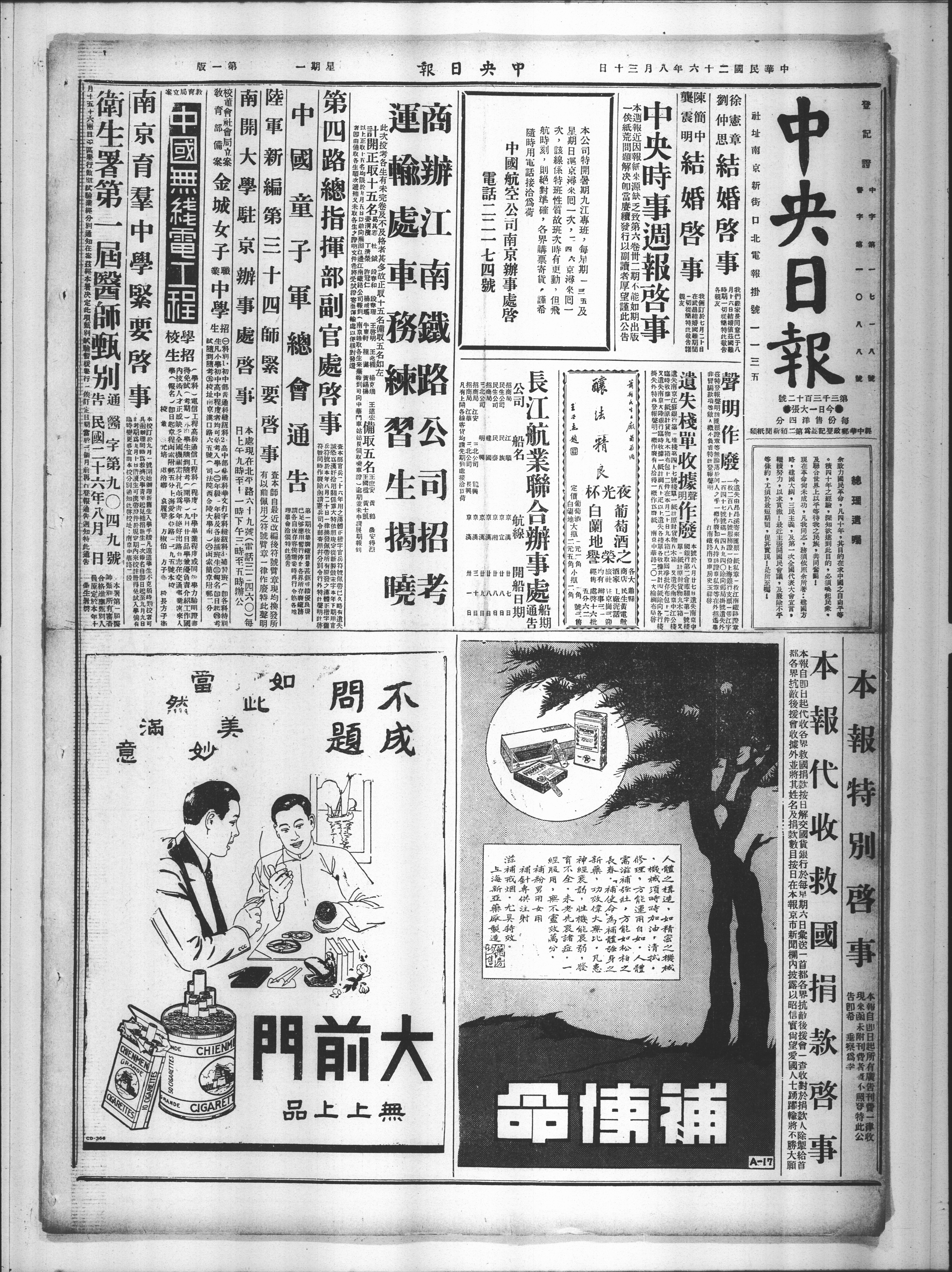 本报代收救国捐款启事