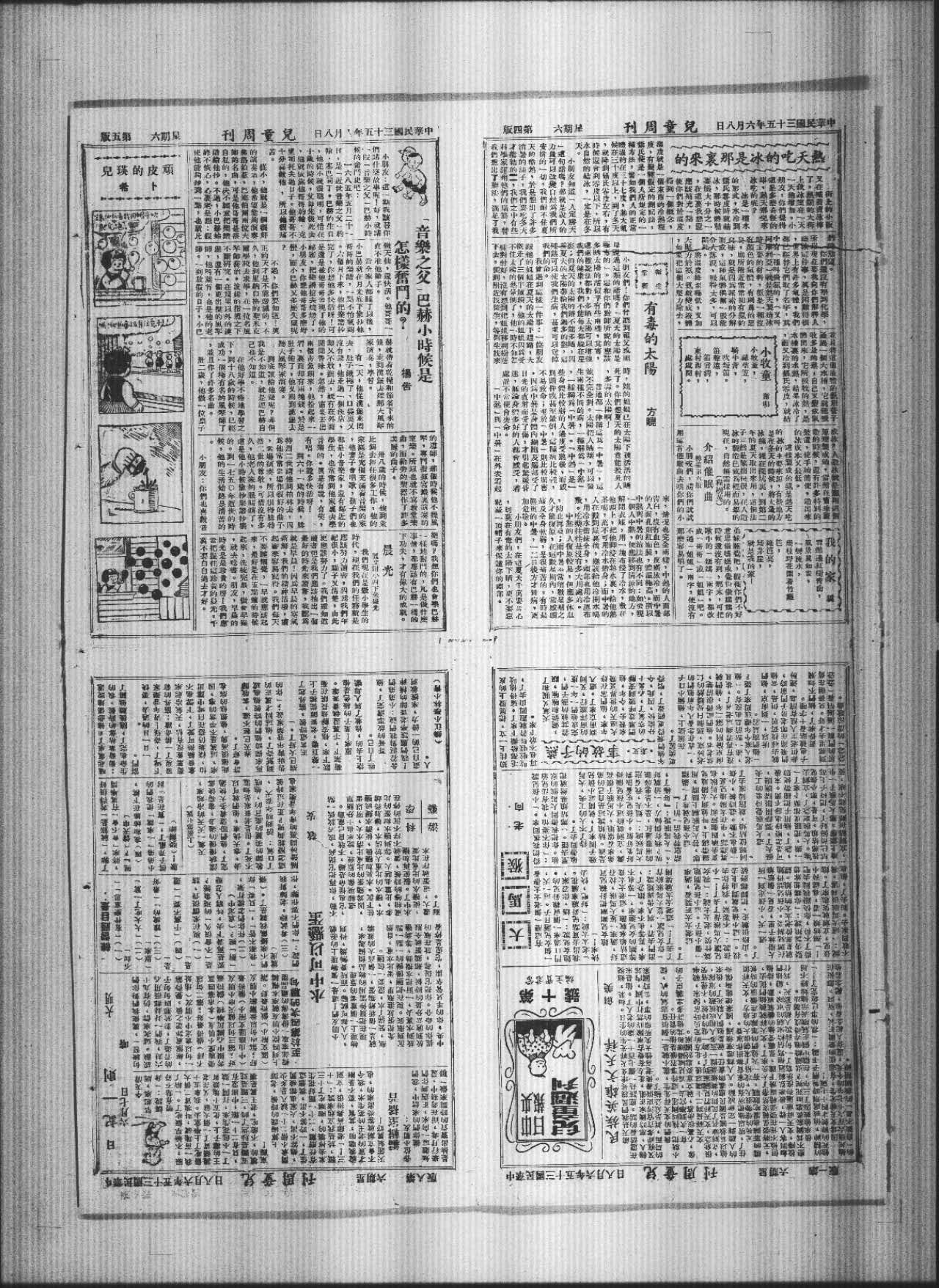 小朋友们!你们曾听到祖父或祖 时,她的姐姐已在太阳下被活活的晒母说过这类的话吗?「夏天的太阳是 死了。你们想夏天的太阳竟能杀死人极青的」。这和你们教师所说的应该,多毒的太阳啊!多晒太阳的话似乎有些两样,其实,这两种说法都对,多晒太阳可以增强 并不完全对。太阳把人晒坏,可以发我们的健康,我们不能每天都躲在屋里;但夏天的太阳的确不能多晒,因爲夏天的太阳带给我们过多的热,这种热可以使我们生病,甚至可以送掉我们的命。我曾遇钊这样一件事:一位朋友跟他的姐姐在夏天的太阳下赶路,大概走了三个半钟头,他的姐姐因为受不住太阳的热晕倒了,他一时不知怎样对付好,没有想到把姐姐移到树荫下去,便到附近找医生