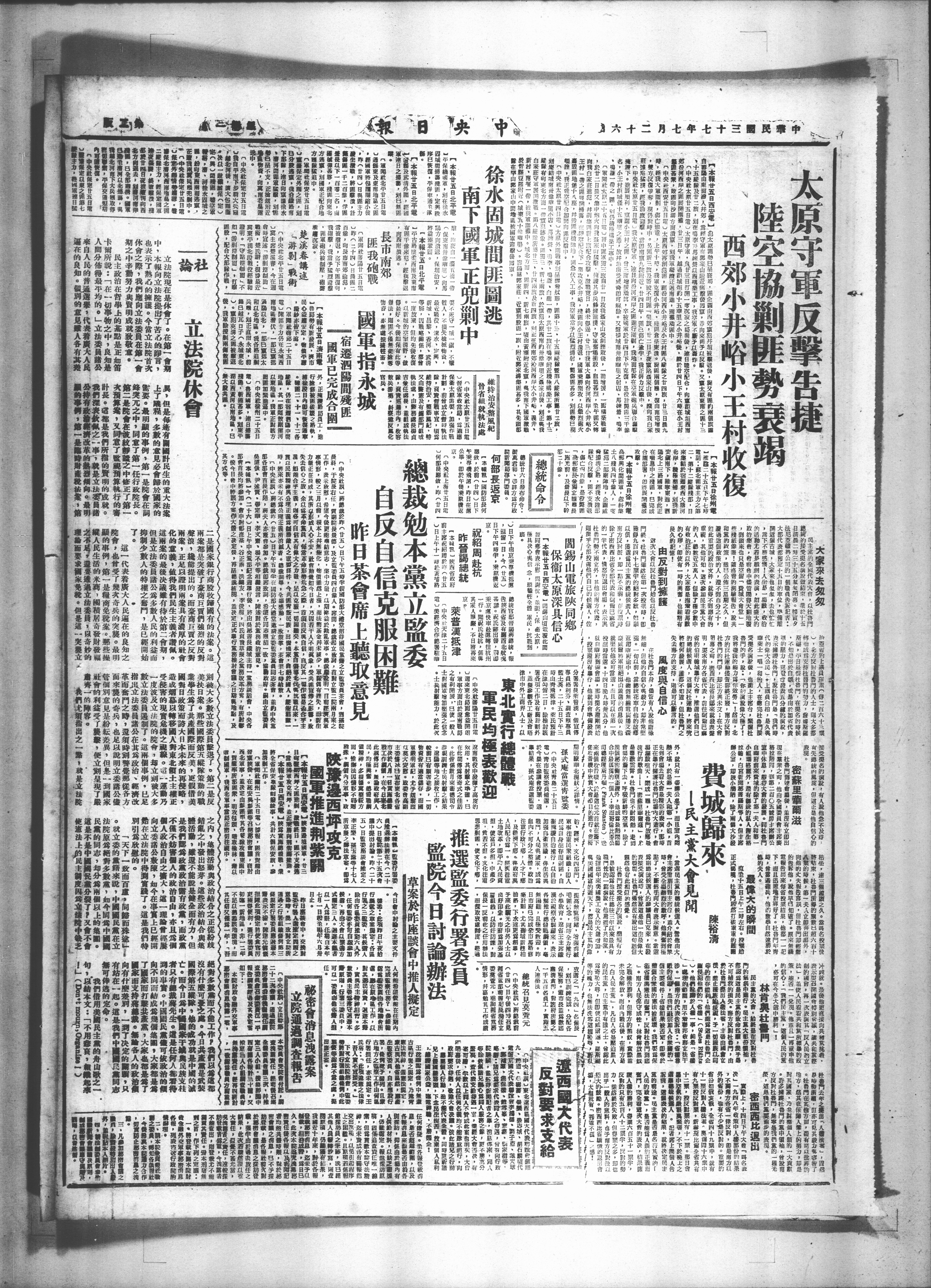 | 文章题名: | 东北实行总体战· 军民均极表欢迎 |