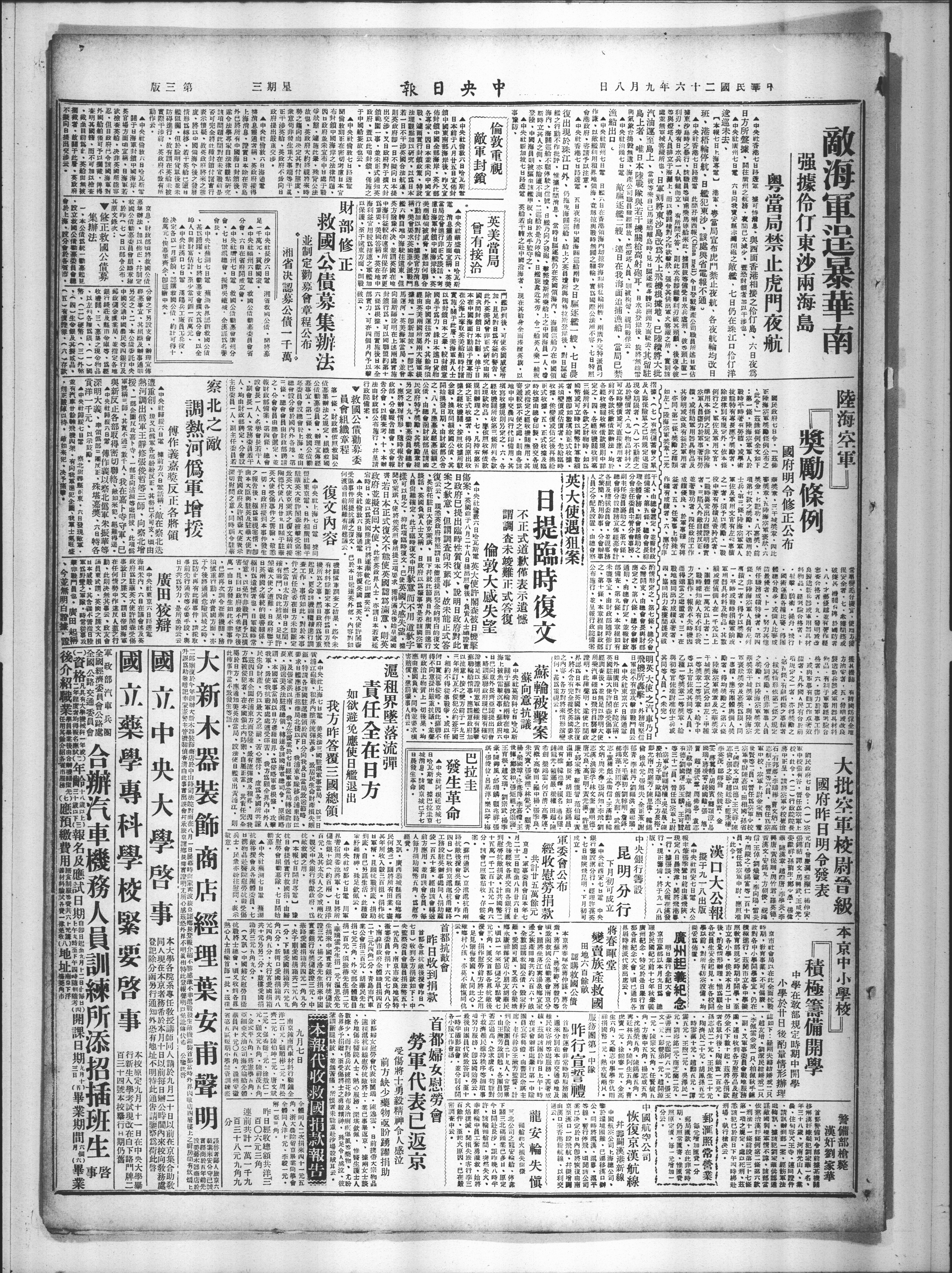 汉口大公报 拟于九一八出版