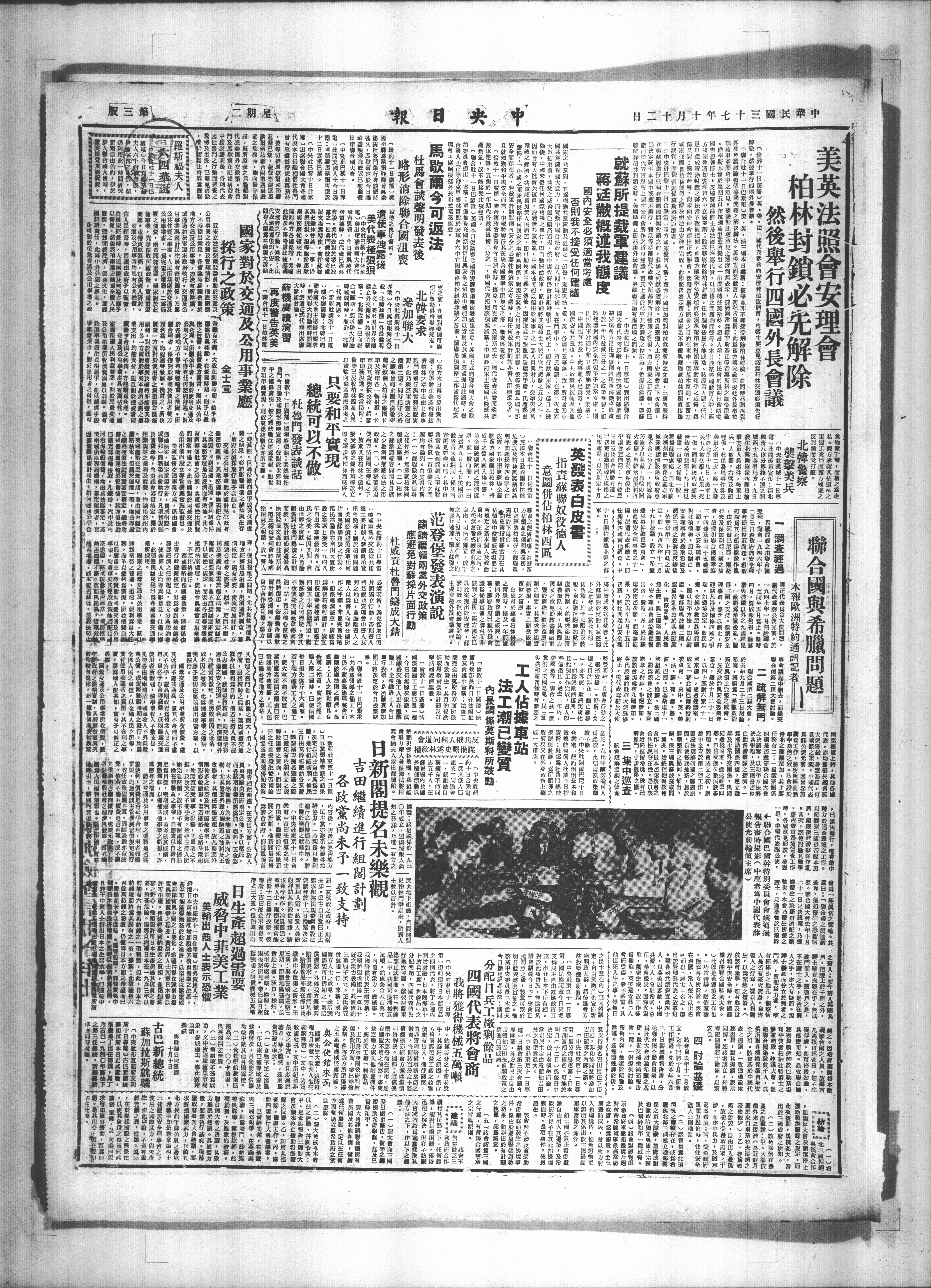 [联合肚十一日巴银肌)英●英·法三顺本日声将·饭等X非不颐接受解除柏林封食X·同时召哪强