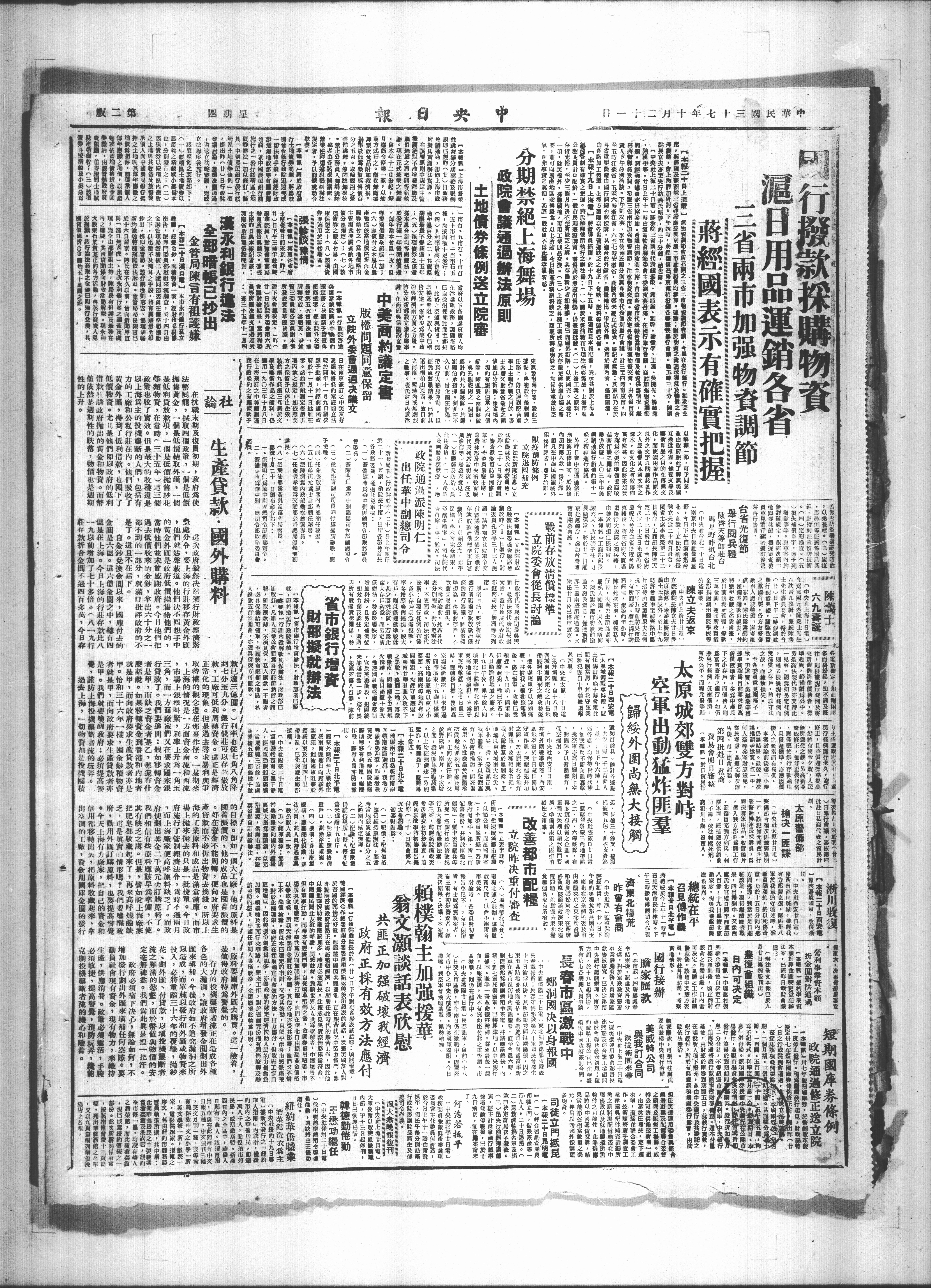 | 文章题名: | 改善都市配粮 立院昨决重付审查 |