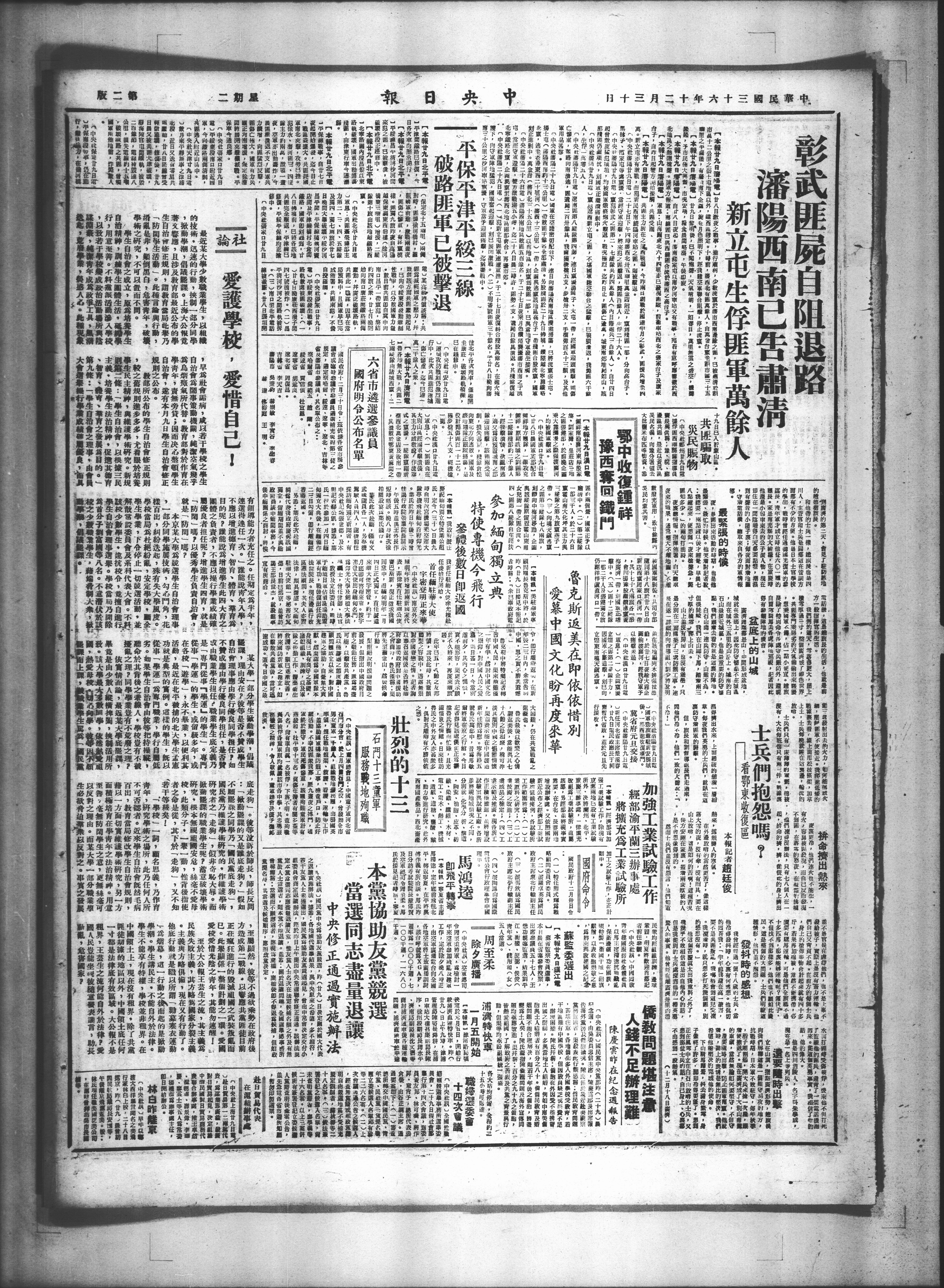 彰武匪尸自阻退路 沈陽西南已告肅清