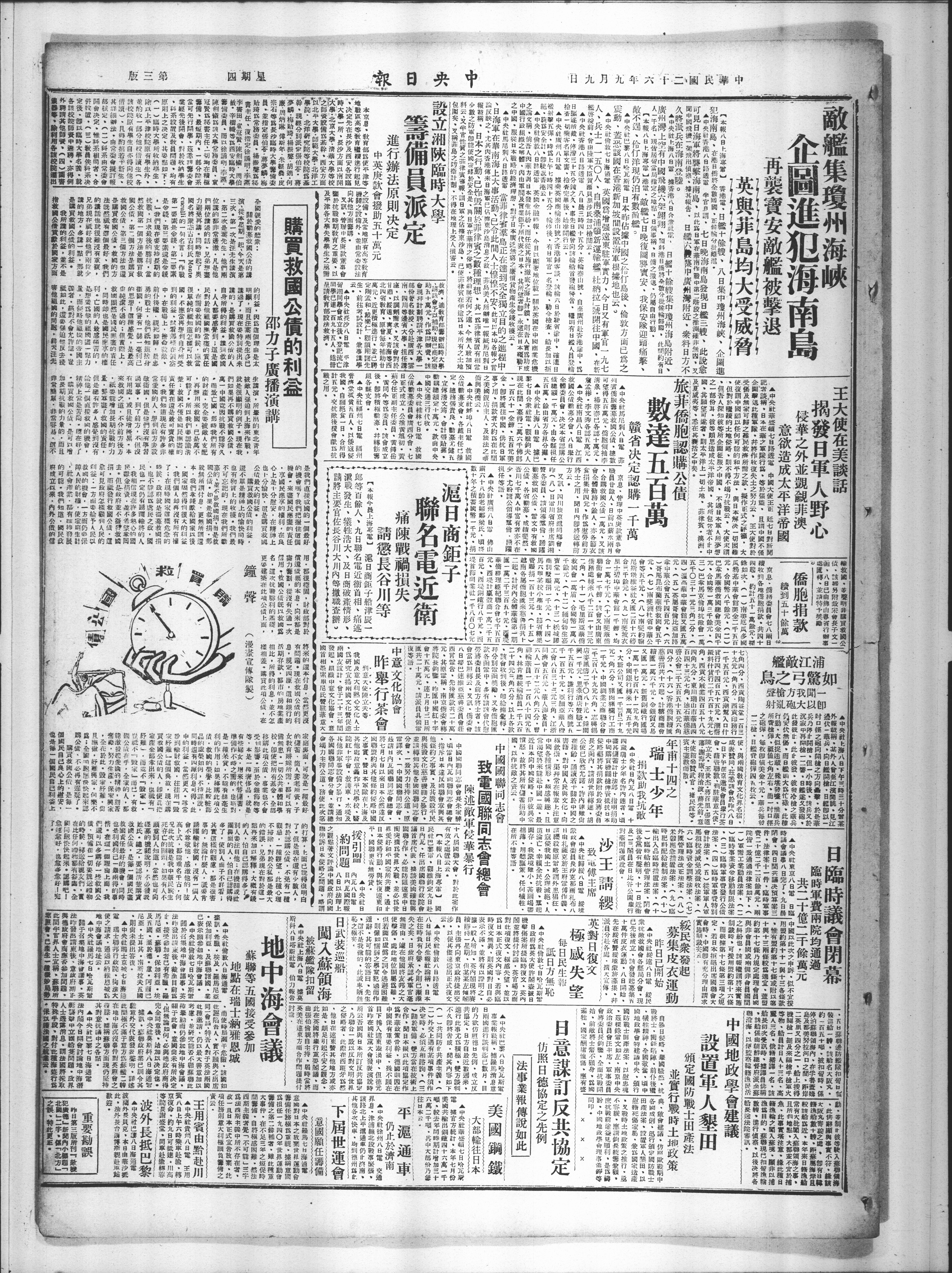 中央社巴黎八日哈瓦斯电 事业报载称、据罗马消息意日两国进行谈判迄已数月、目的乃欲仿照德日先例、成立反共协定、日方自最近数周来、进行此事尤为积极、双方谈判不久即将告成、闻其内容如下、