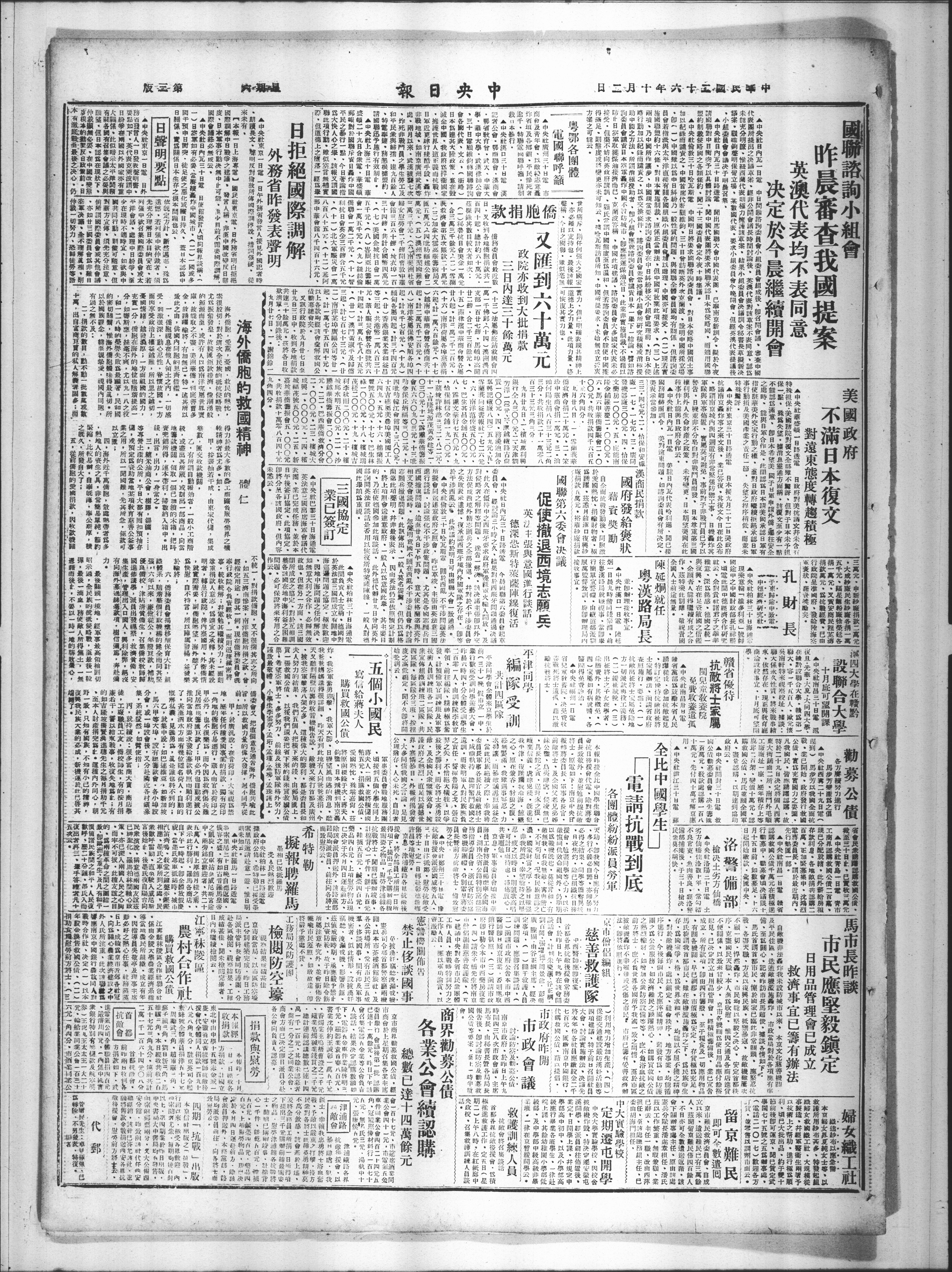 前方将士店不食世界各國所予我一致之同情,至於市區