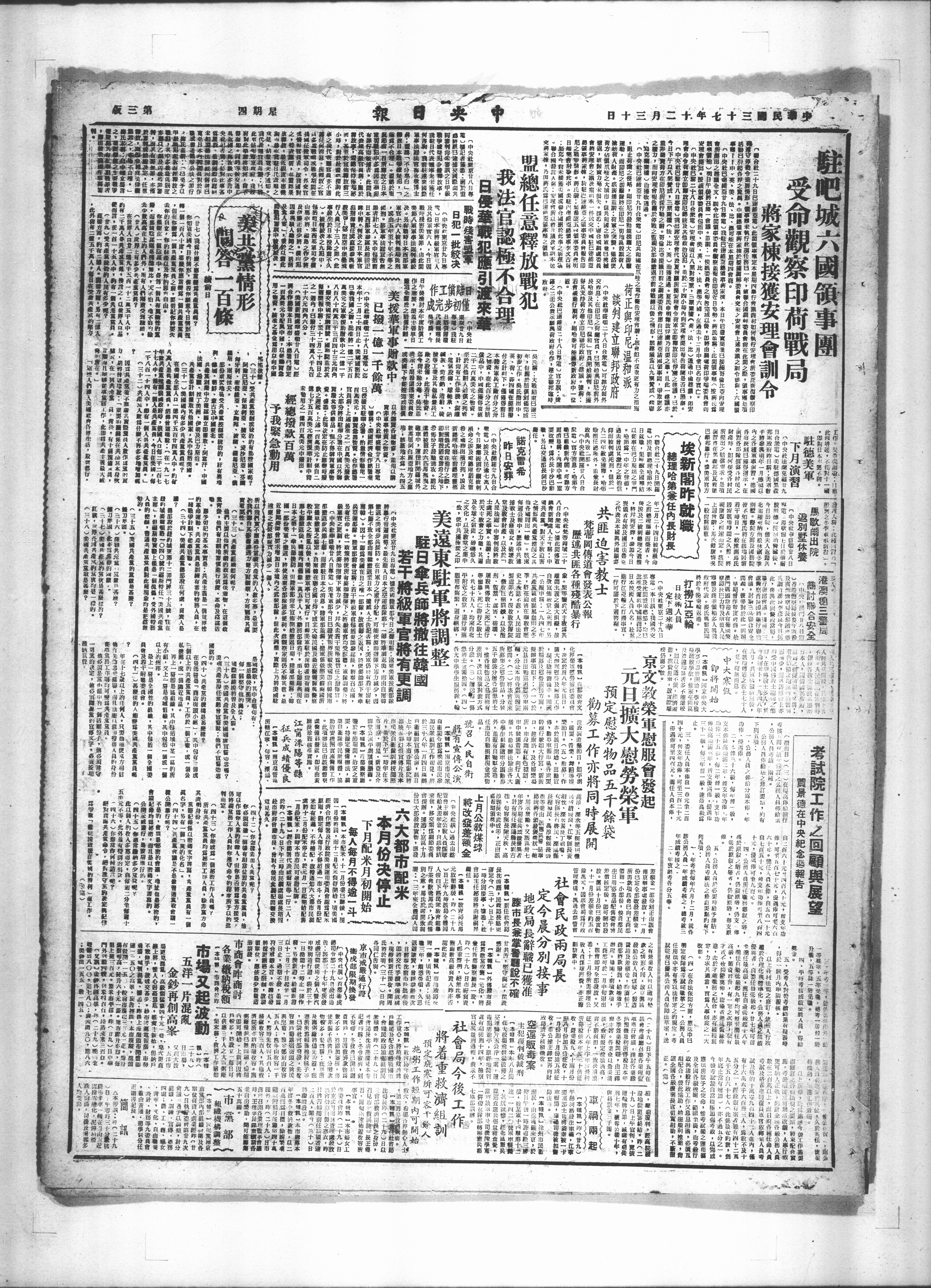 中央社廿九日合