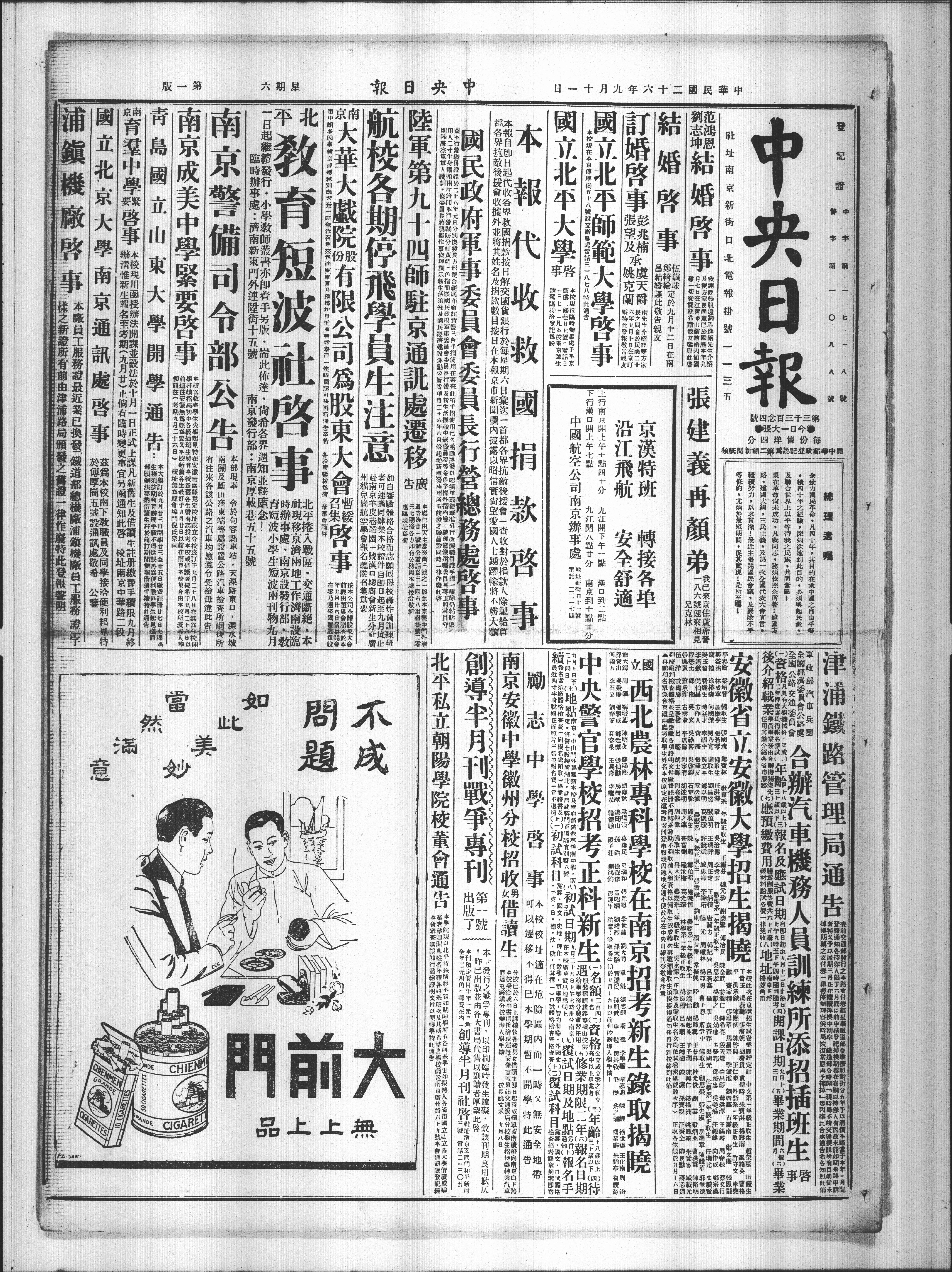 伍镇球 郑绮纶定于九月十二日在南昌结婚谨此敬告亲友