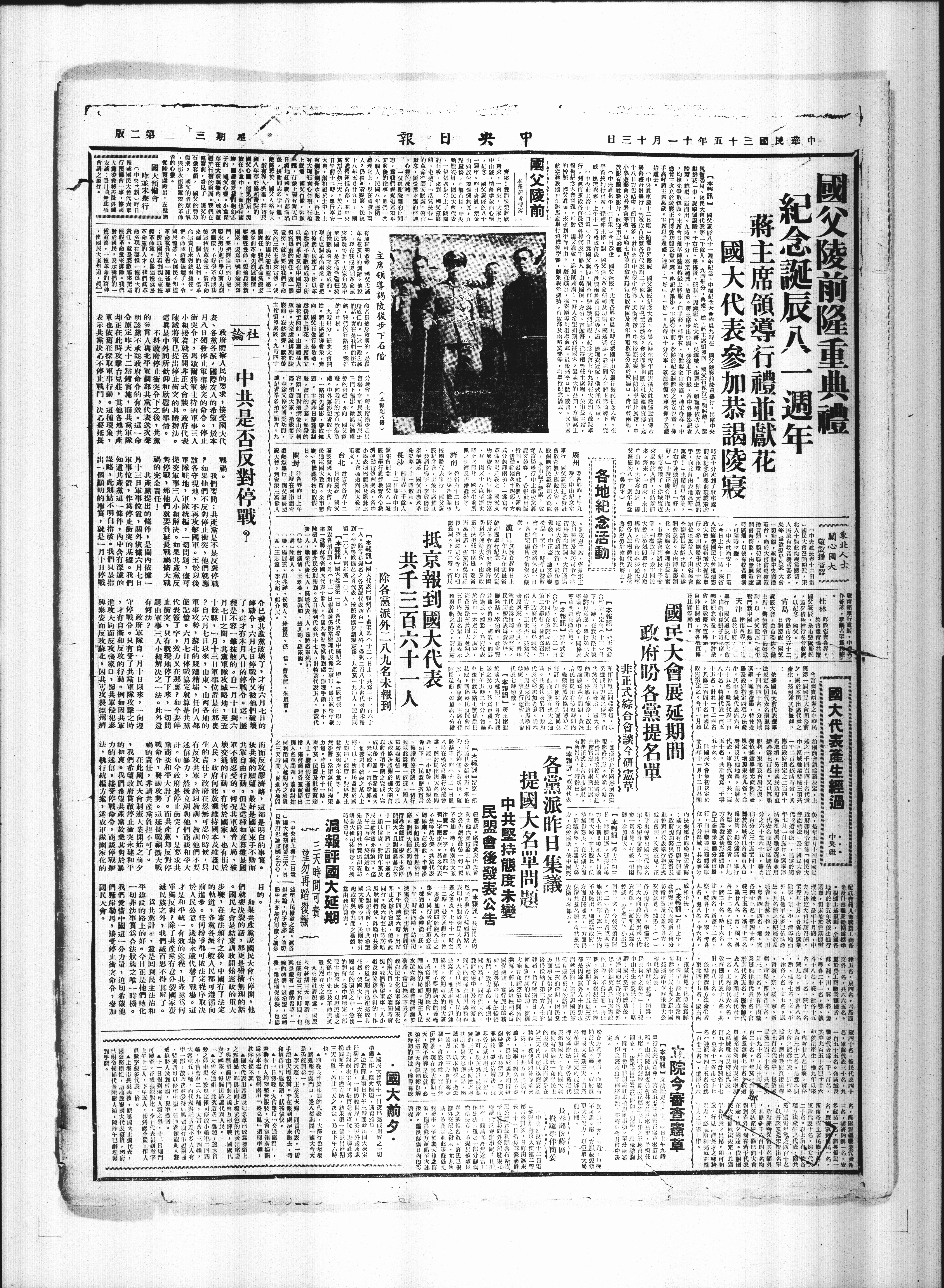 分民需代表張申府·章伯向其他代表宜上午草成恩水昨各方接,