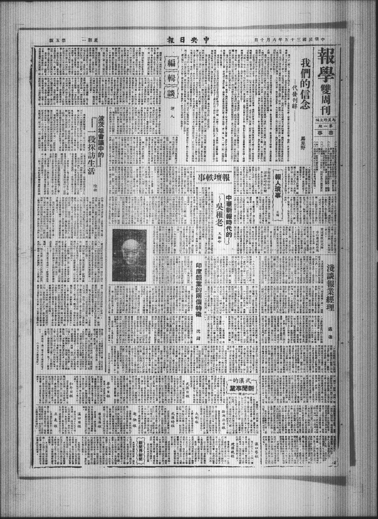 这是一家新兴的报纸也储富有新气象,现社长袁雍先生,副社长黄焕如先生,总编辑陈坚平先生,社论的撰述,组有社论委员会,多系武汉社会名流,该报现在力求进步,无论编排印刷,都日新又新,因此销路也天天在增加,华中日报的印刷没备也很可以。