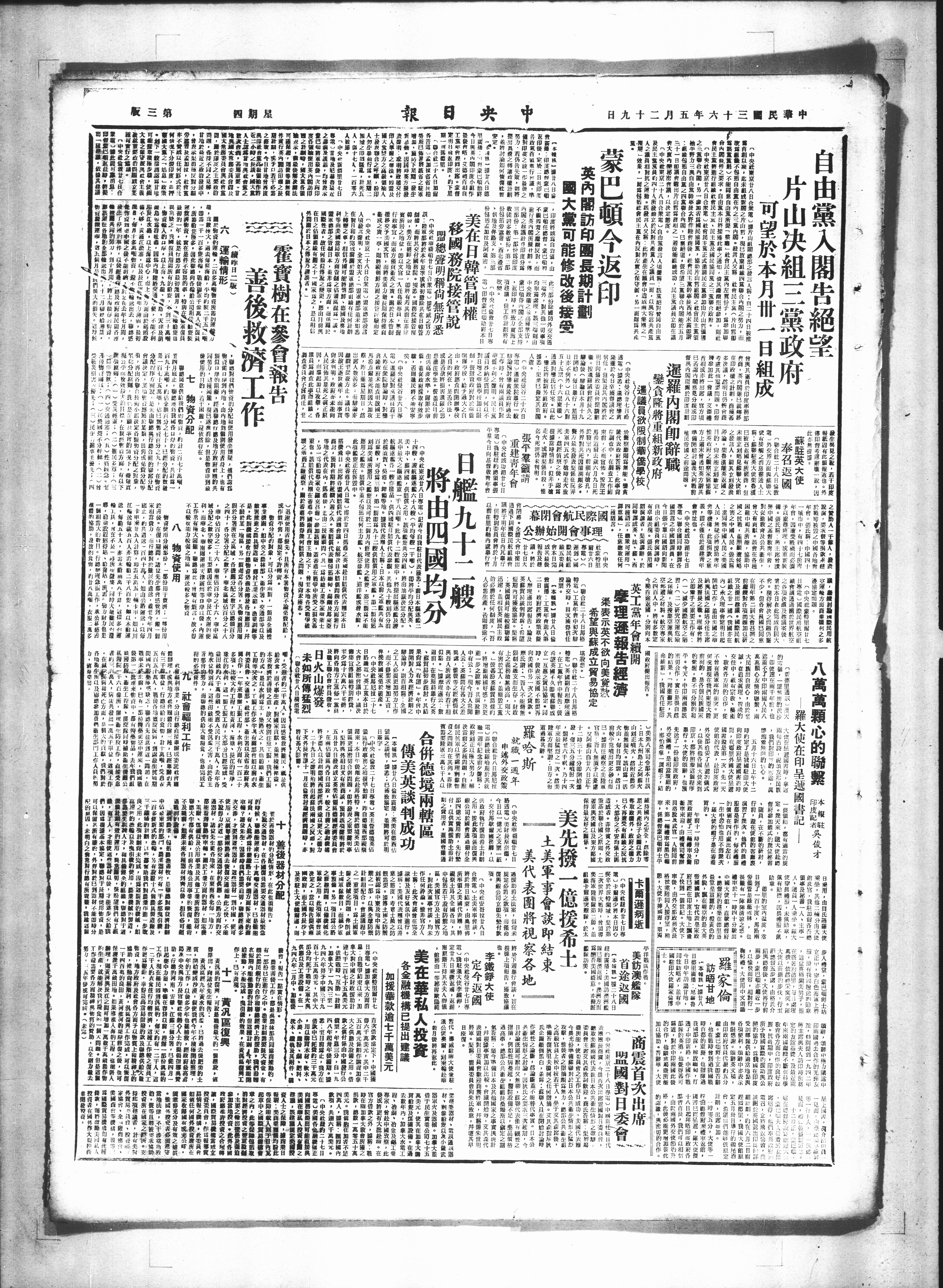 電印督蒙助本日 中央偷敦廿七日事 頂建,但工作計划將有 ,返印時,將致力實施上 蒙巴朝得内之全部支持 中央政權之最高層掌管,
