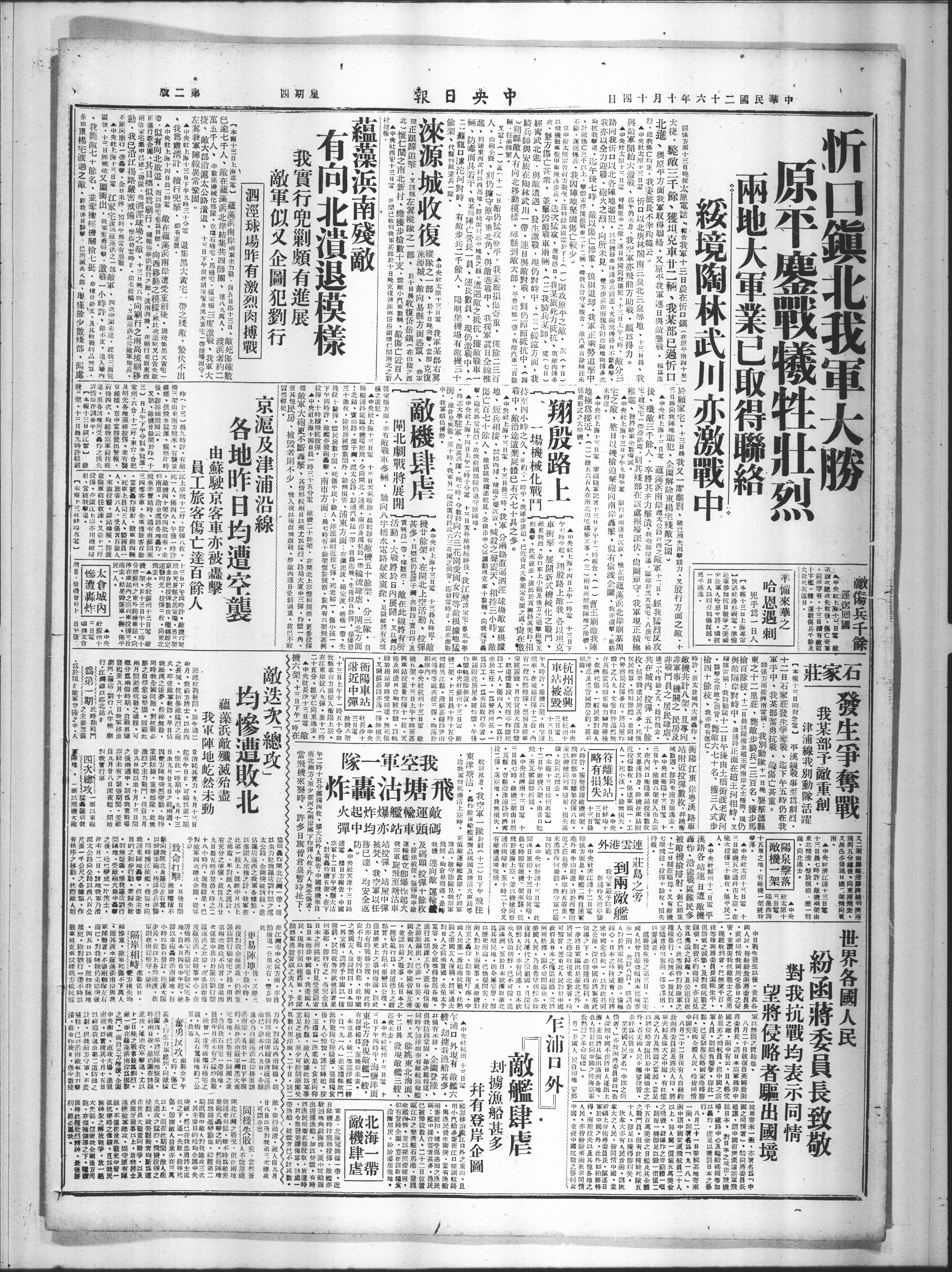中央融上海十三日下午九時牛電扇行正面速日沉寂、推左侧藻浜北岸翩基周